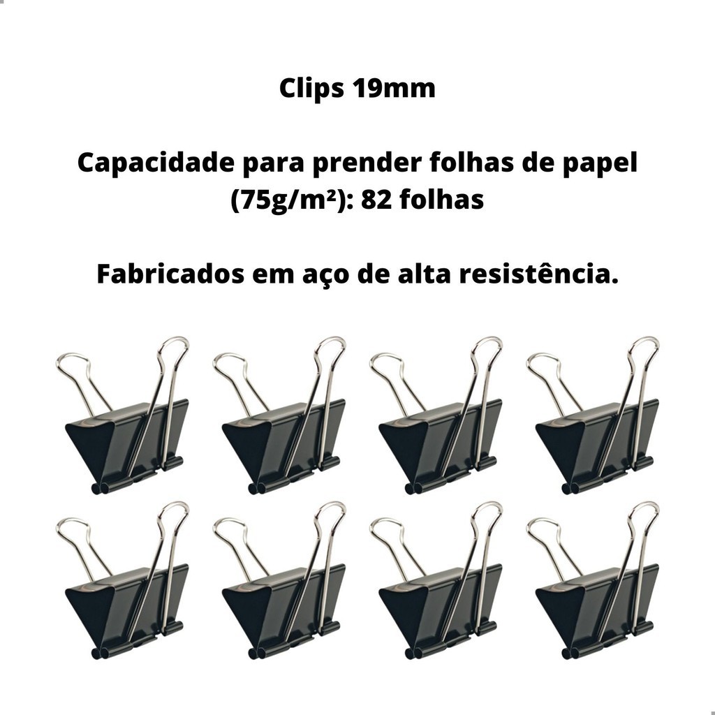 Kit 40 Clips Borboleta Prendedor De Papel Binder Preto 19mm