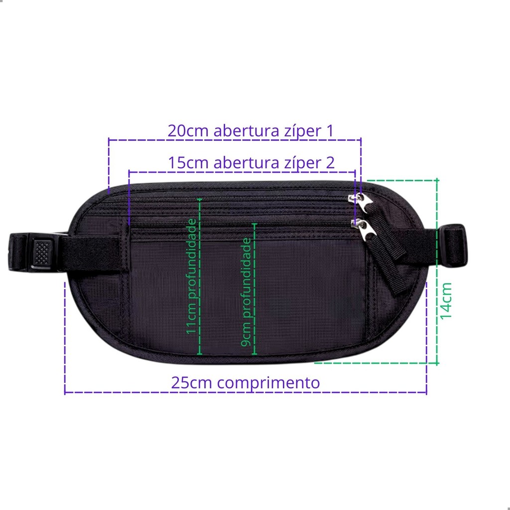 Kit 2 Pochete Doleira Antifurto Bolsa Cintura Esporte Corrida Academia Viagem Celular Documentos