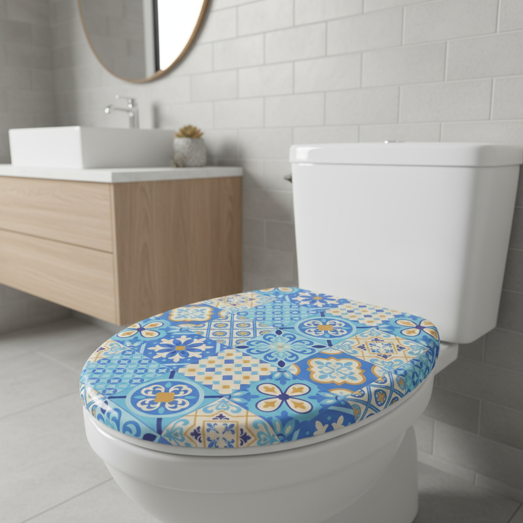 Tampa de Privada Vaso Sanitário Almofadada Estampada Universal Fácil de Instalar