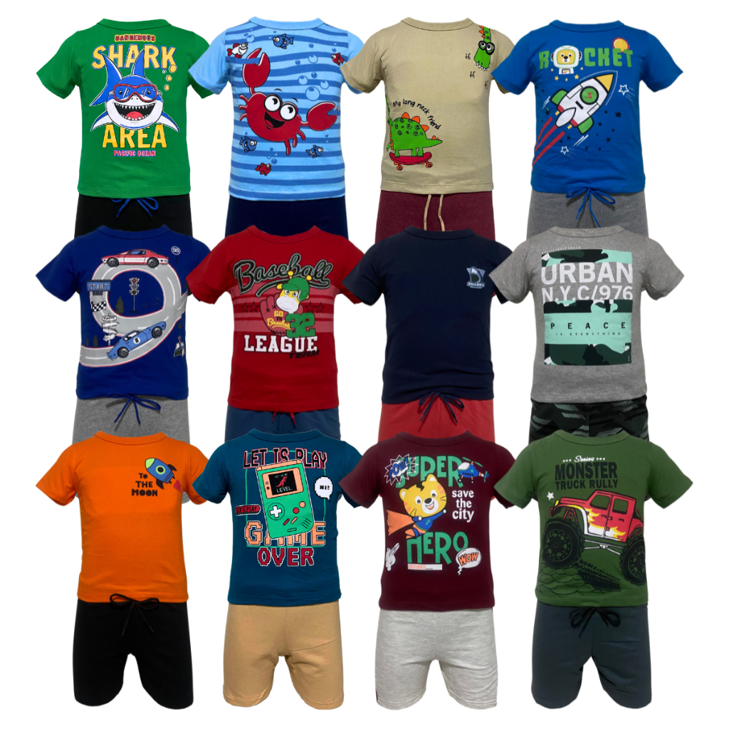 Kit 10 Peças Infantil Menino com Bermuda e Camiseta Dia a Dia Alta Qualidade Algodão