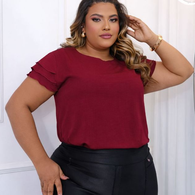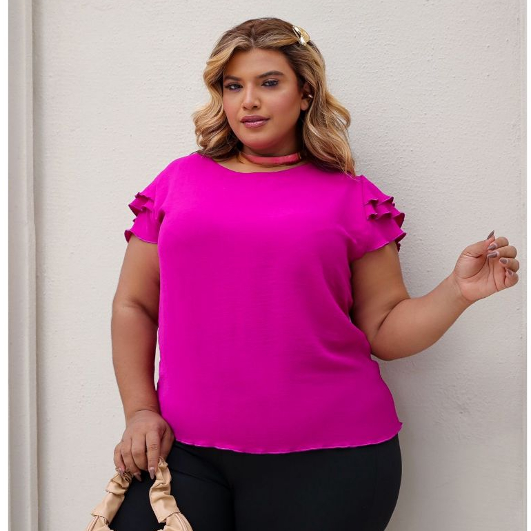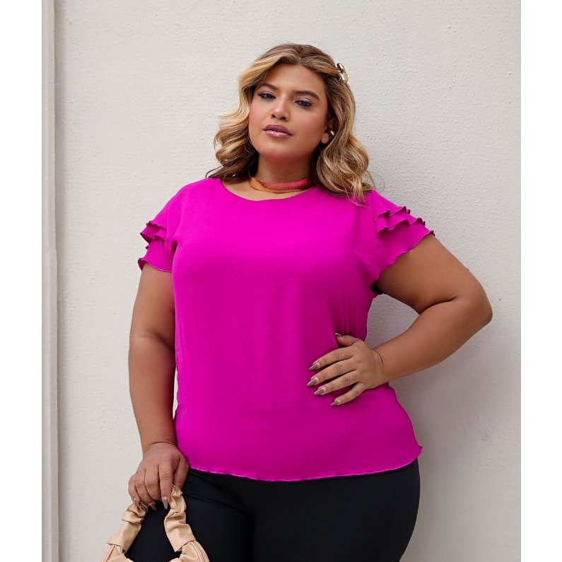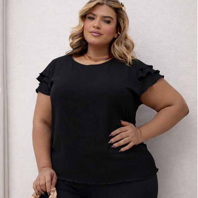 Blusa Feminina plus size elegante moda evangélica duna 3 babado