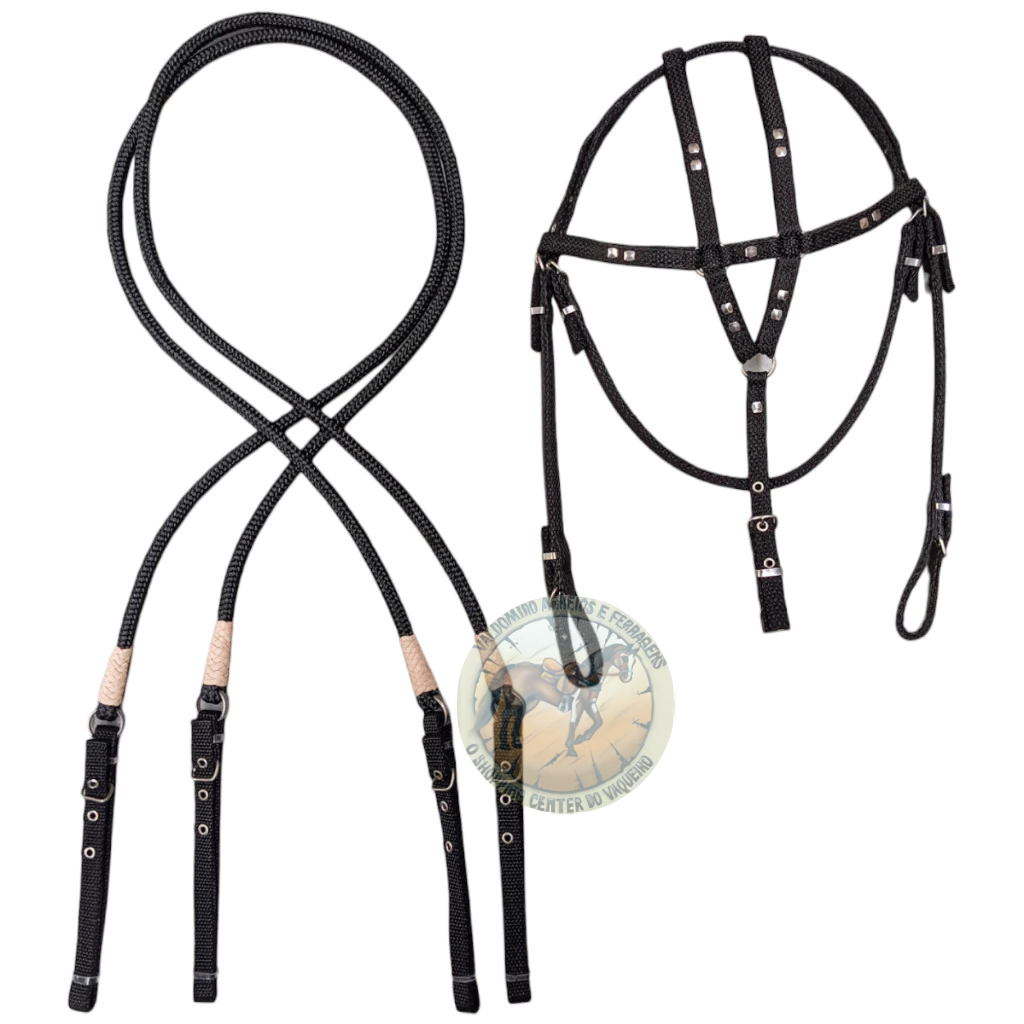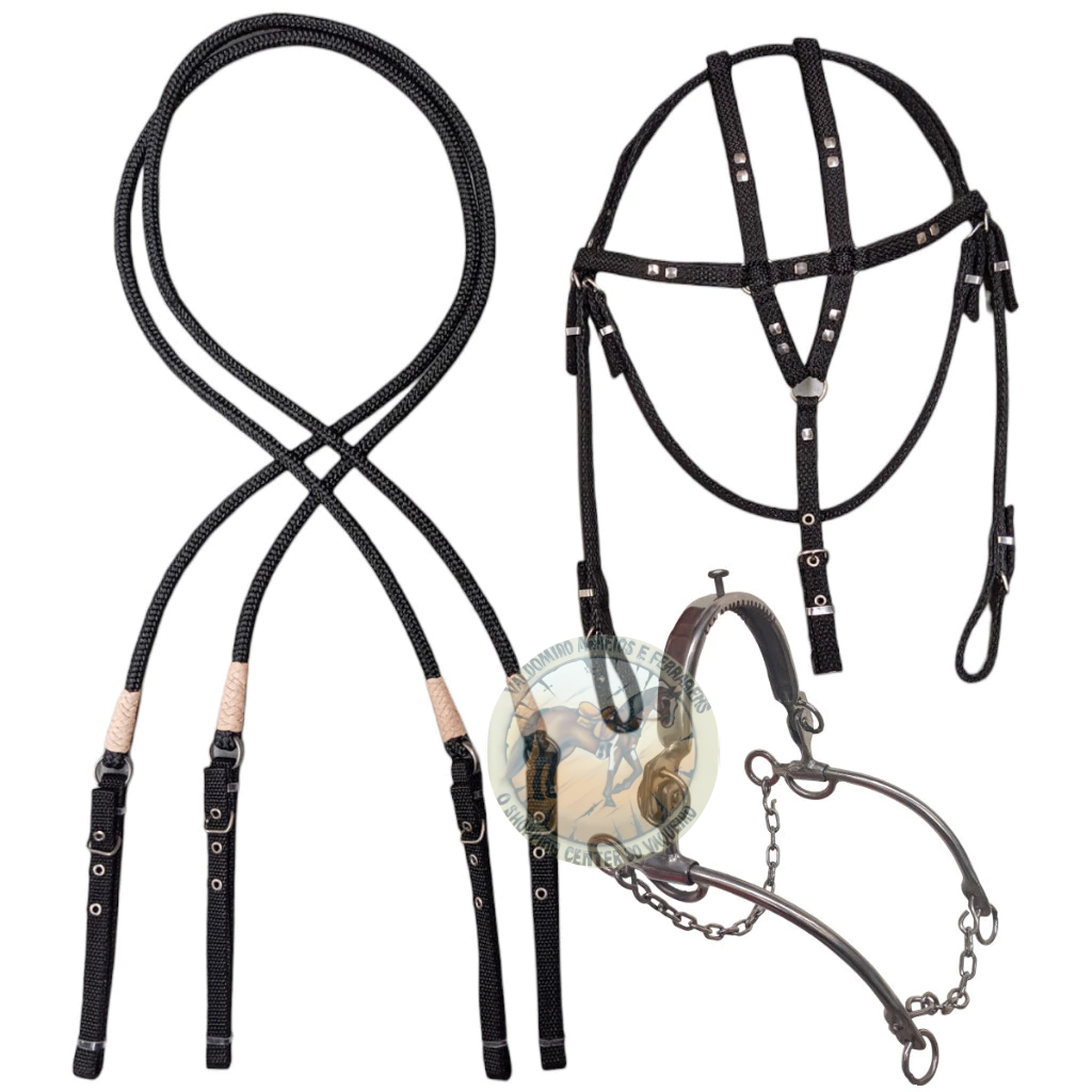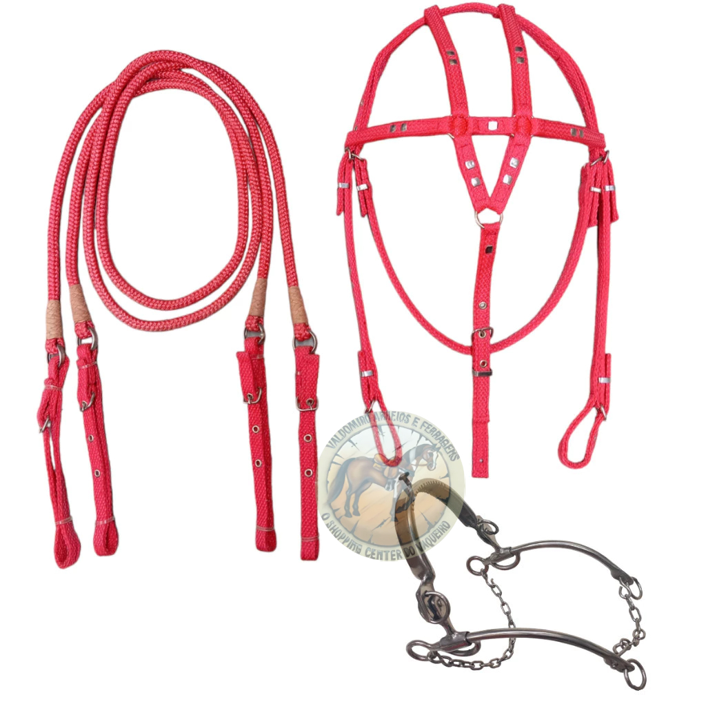 cabeçada de cavalo vaquejada completa freio professora barata nylon