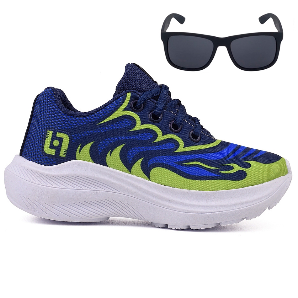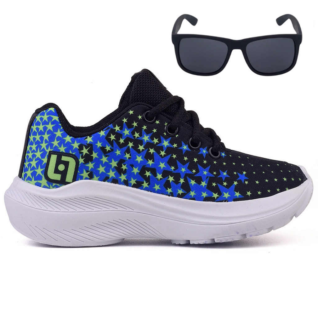 Tenis Infantil Meninos Casual Escolar Preto Preto + Óculos