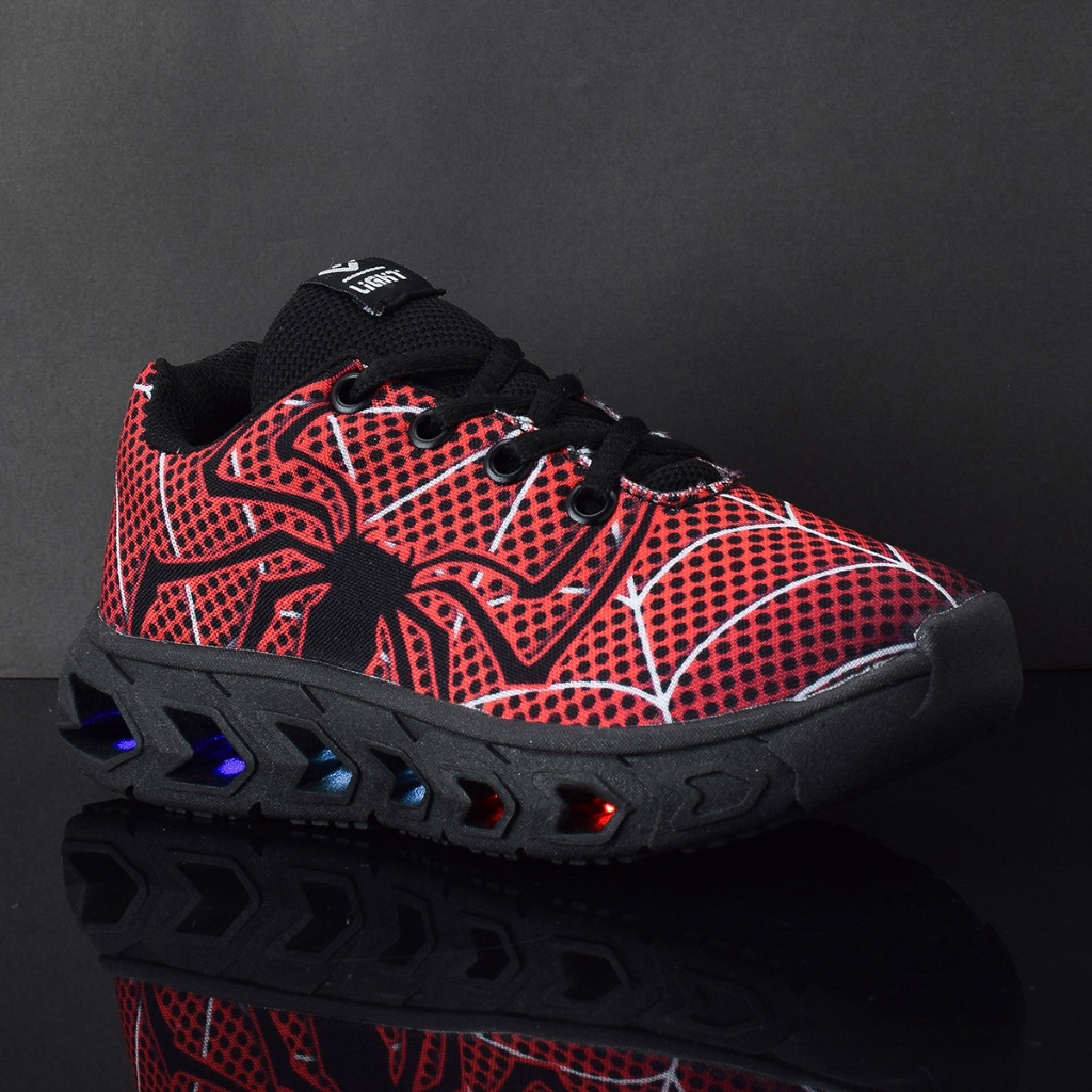 Tenis De Led Aranha Infantil Preto Masculino Meninos + Chinelo + Oculos + Relogio