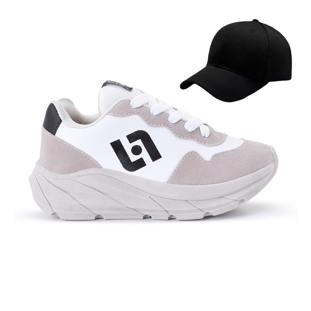 Tenis Infantil Meninos Jogger Escolar Casual Camurça + Bone