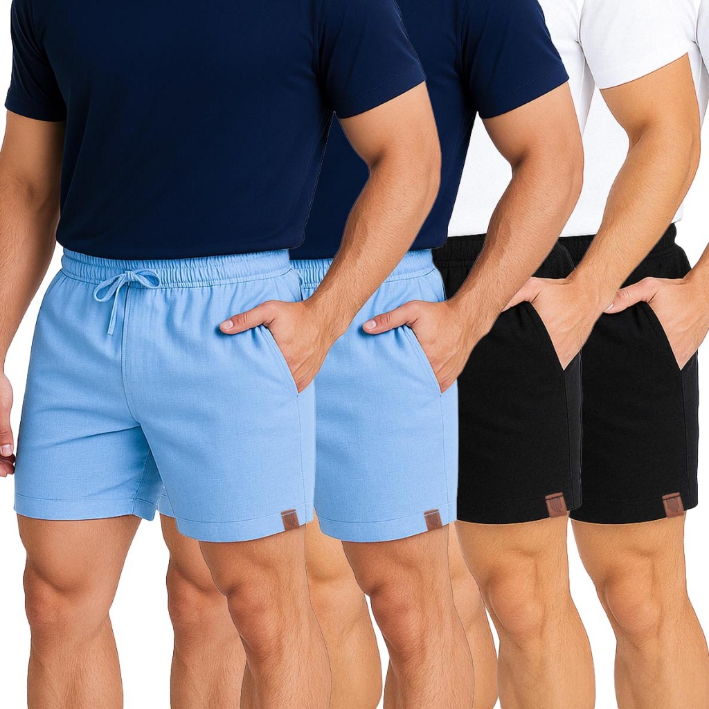 Kit 4 Short De Linho Masculino Básico Mauricinho Premium Lavado De Alta Qualidade Short Linho Praia