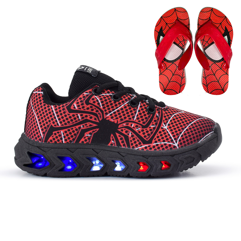 Tenis De Led Aranha Infantil Masculino Meninos Confortavel + Chinelo