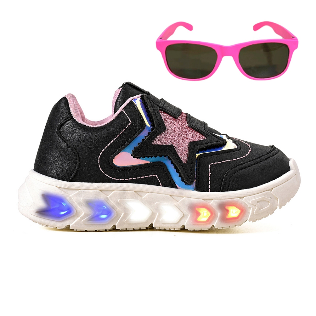 Tenis Infantil De Led Meninas Estrela Holografico Casual + Oculos