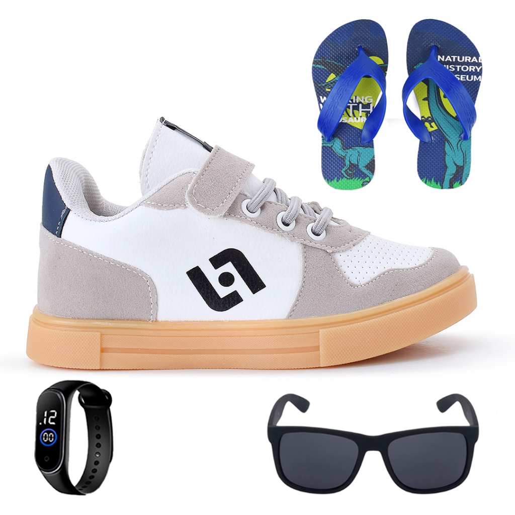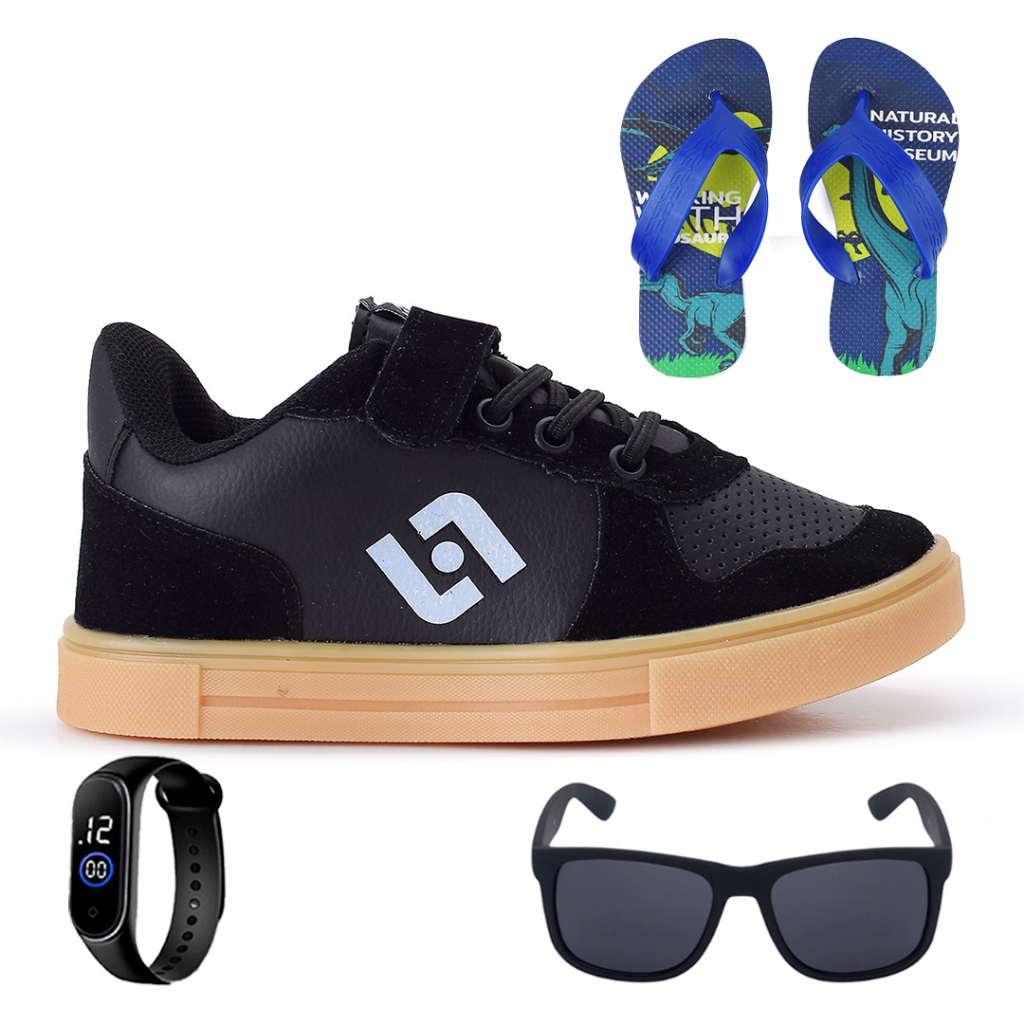 Tenis Infantil Casual Sapatenis Meninos Street Calce Facil + Chinelo + Oculos + Relogio