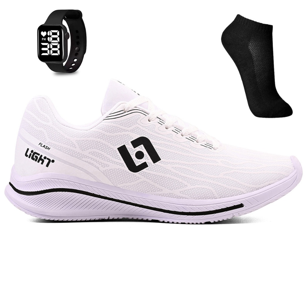 Tenis Masculino Feminino Esportivo Treino Academia Corrida Light Sport + Meia e Relogio