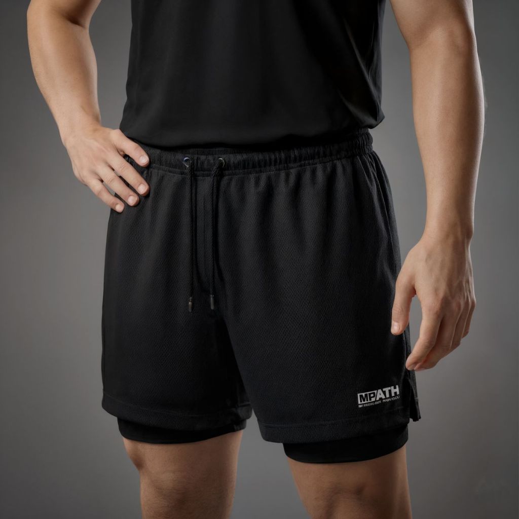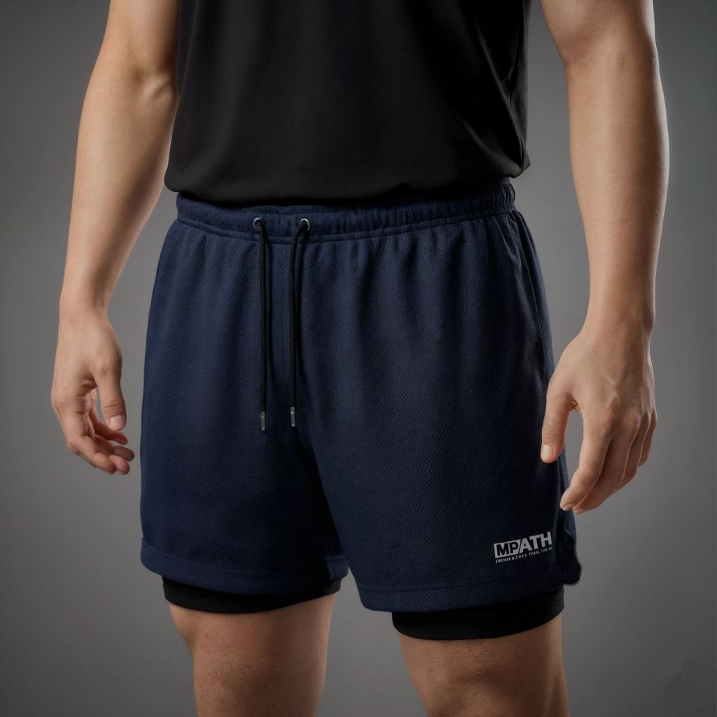 Short Duplo Masculino para Academia Fit com Bermuda de Compressão e Bolso para Celular