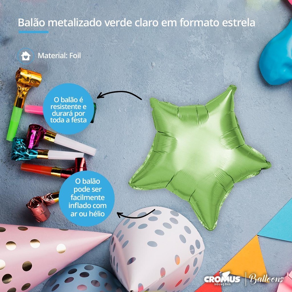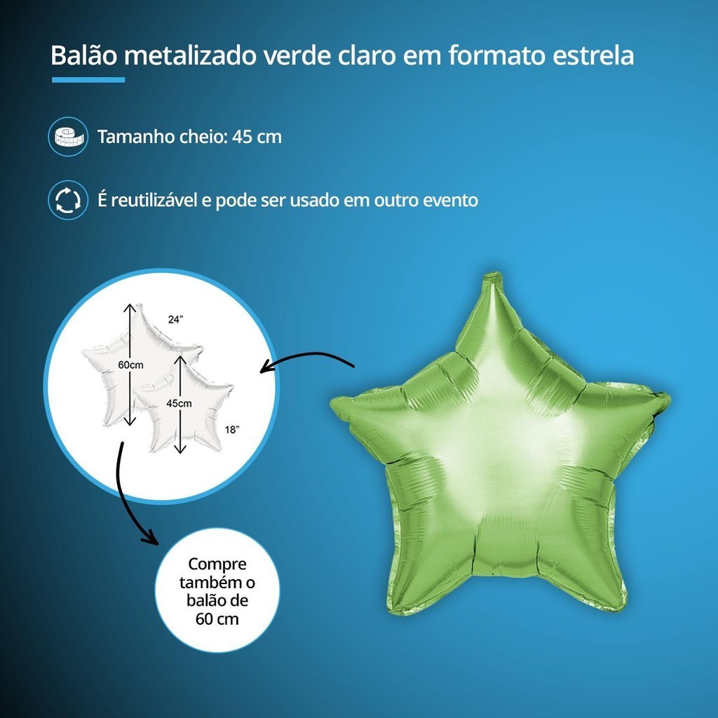 Balão Metalizado Festas Estrela Verde Claro 45 cm para Decoração de Festas Aniversário e Eventos Un
