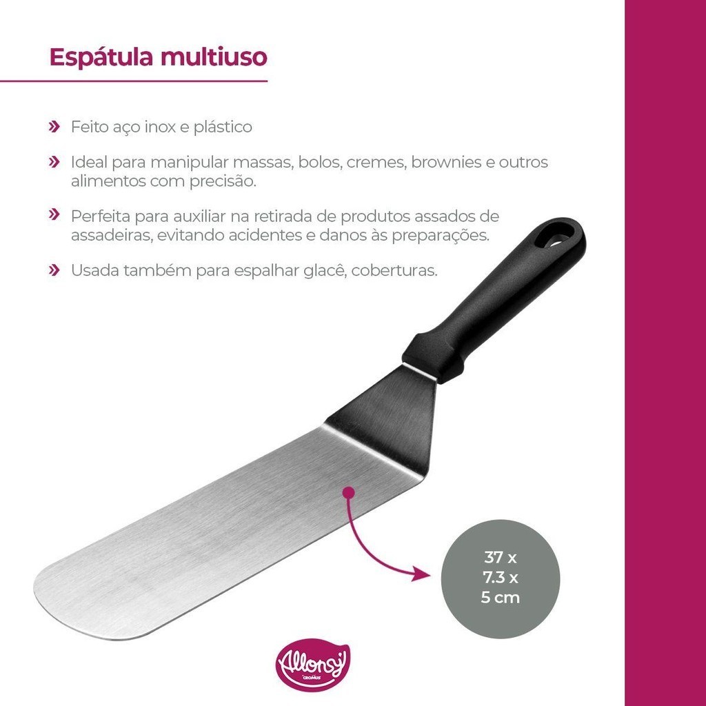 Espatula Lisa de Inox Multiuso para Confeitaria Decorar Bolos e Tortas 37x7.3x5cm Cromus Allonsy