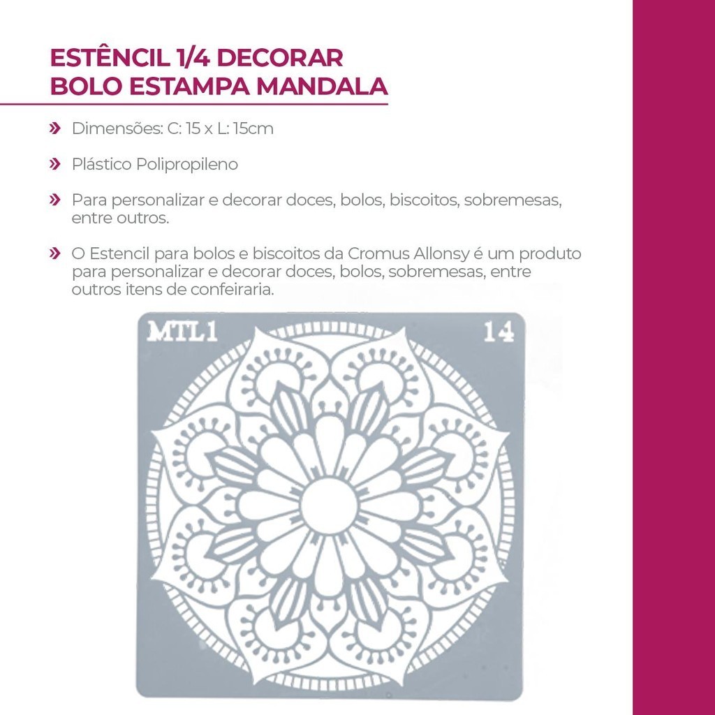 Estêncil 1/4 para Decorar e Confeitar Bolo Estampa de Mandala ST15-04 15x15cm