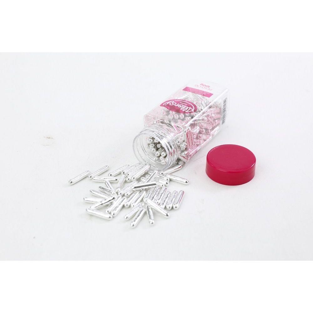 Confeitos comestíveis de açúcar Sugar Rods Prata 20mm formato Bastonetes 100g