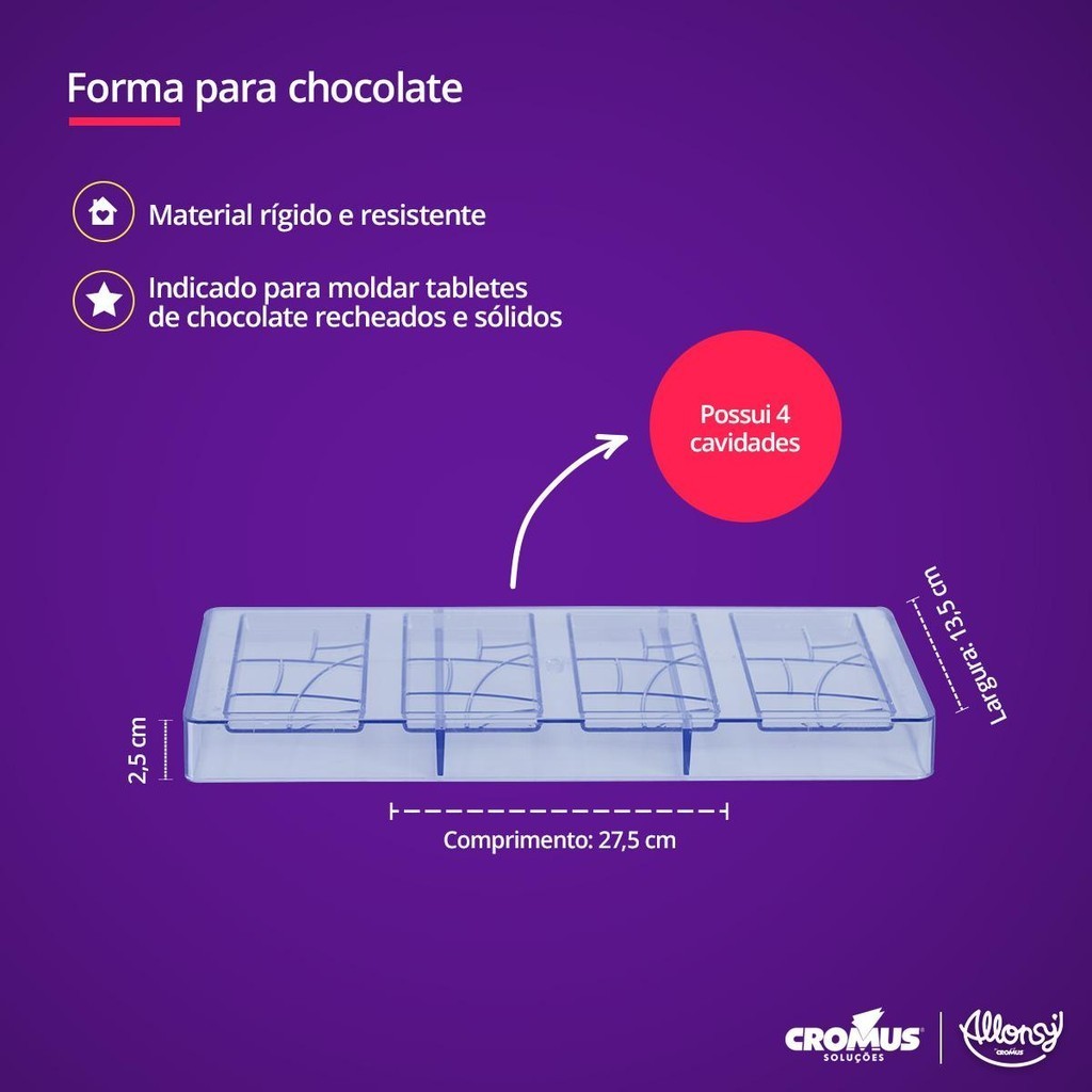 Molde chocolate poliestireno Barra texturizada 4 cavidades