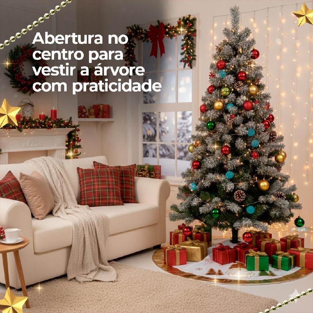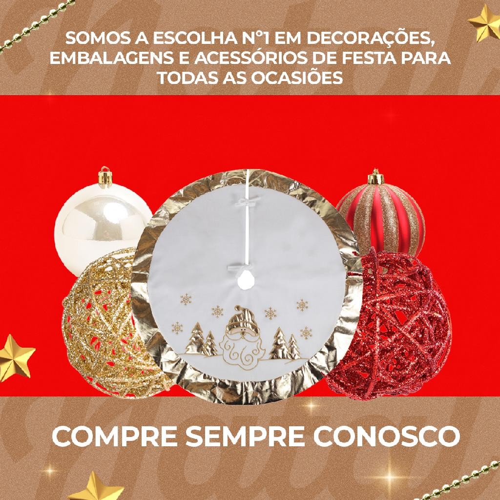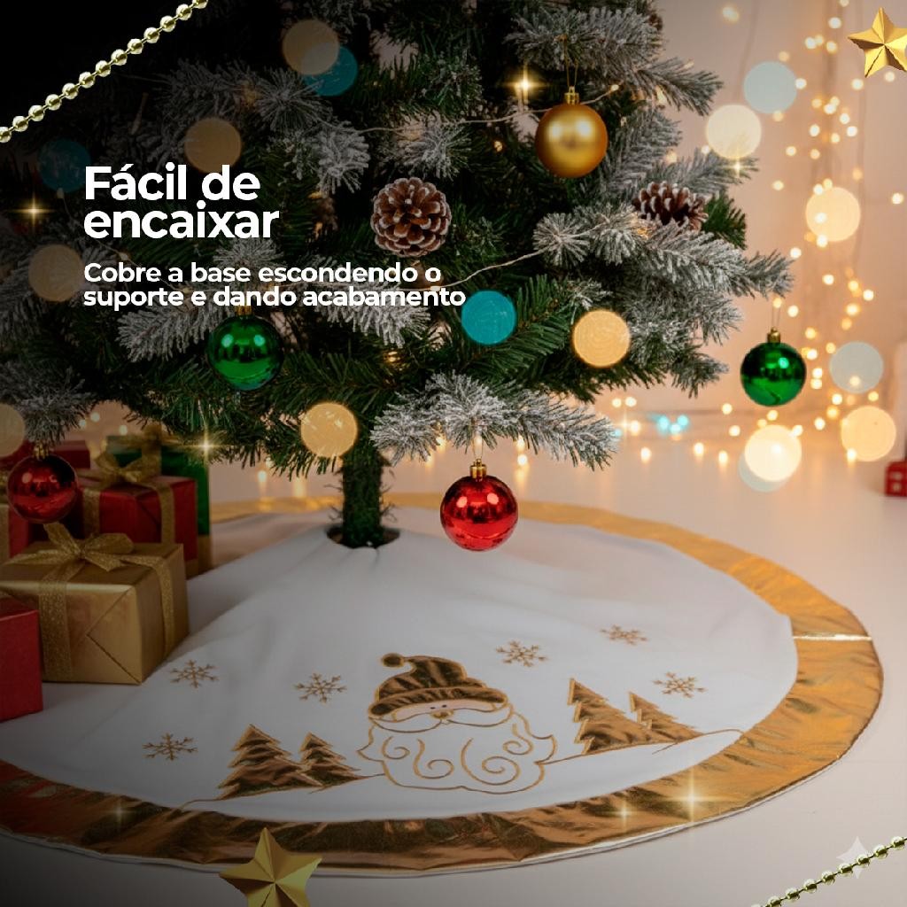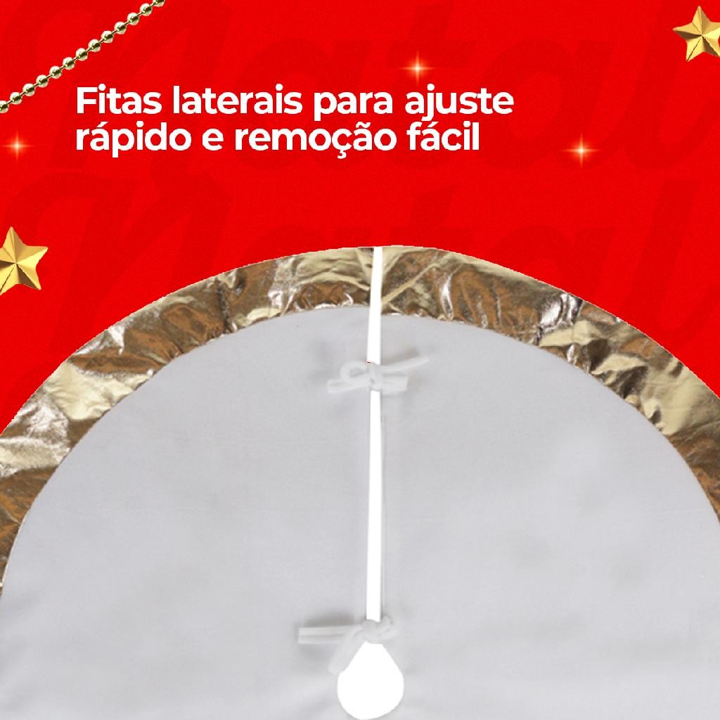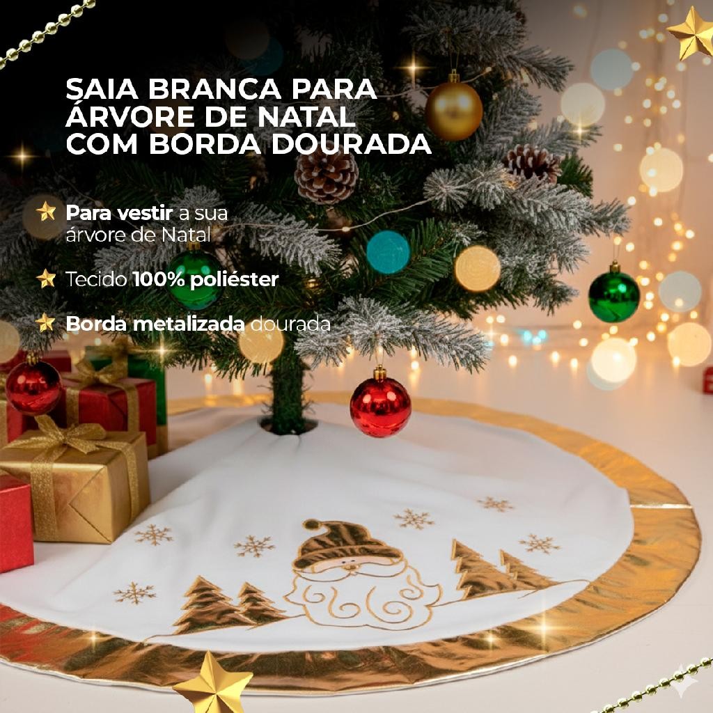Saia para árvore de natal branca com desenhos e borda dourado 90cm