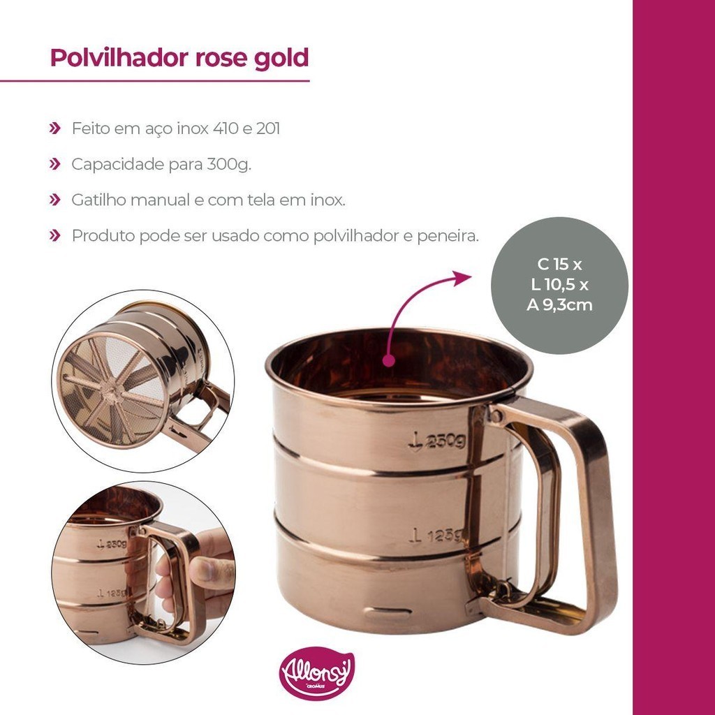 Polvilhador e Peneira Camda Única para Culinária de Bolos e doces 15,5x10x9,3cm 300g 1un