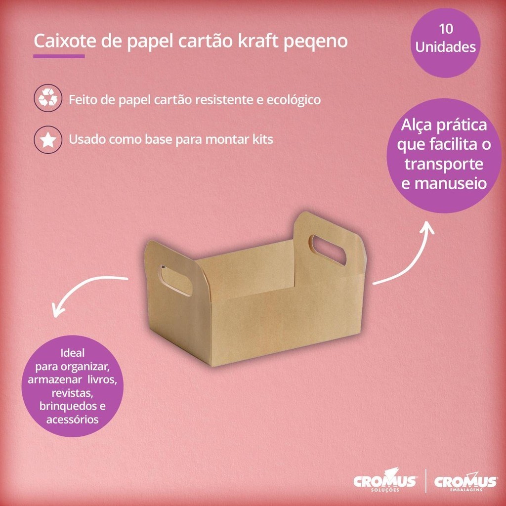 10Un Caixote de Papel Cartão Kraft Pardo pequena com alça Cromus para Presente e Decoração de Festas