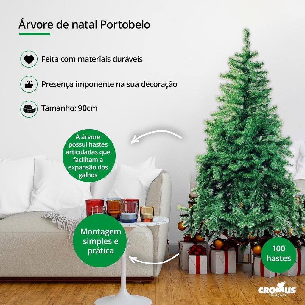 Decoração Árvore de Natal Verde Portobelo 90cm 100 hastes