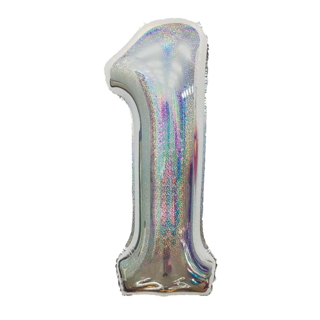 Balão Metalizado Holográfico número 1 Prata glitter Holográfico para aniversários e festas 101 cm Un