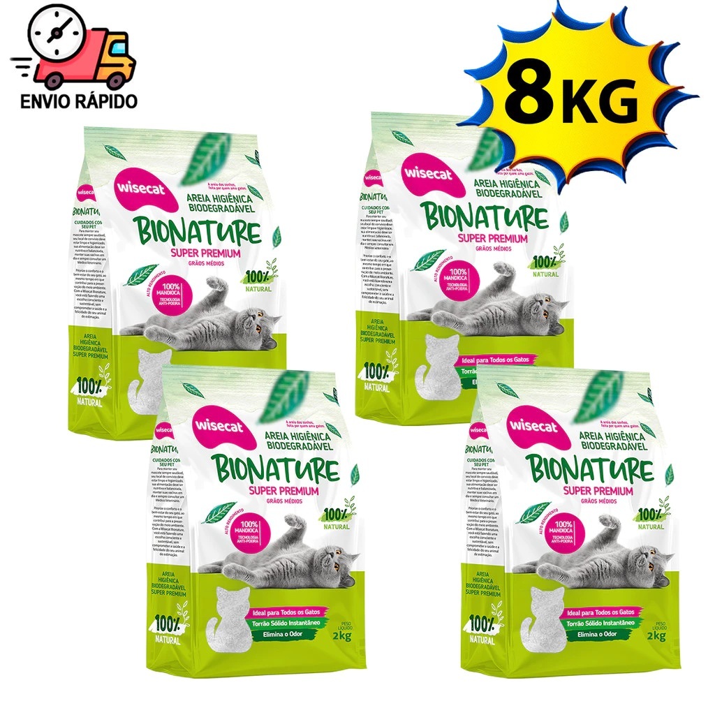 Areia Higiênica Para Gato de Mandioca Wisecat Biodegradável Areia de Gato Sustentável 2kg até 20kg