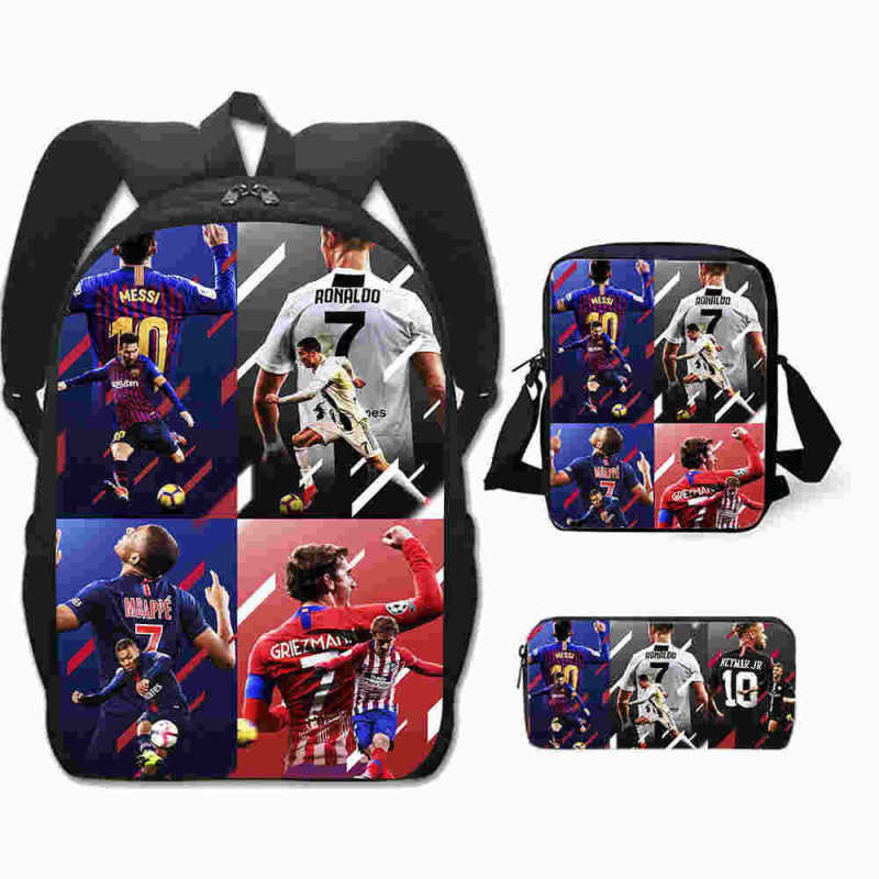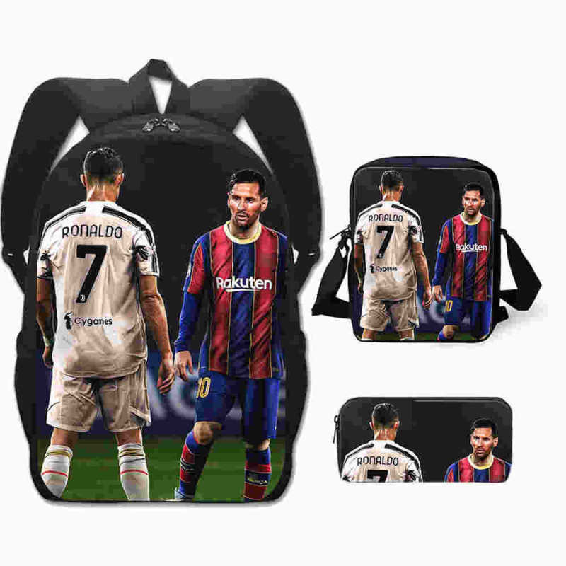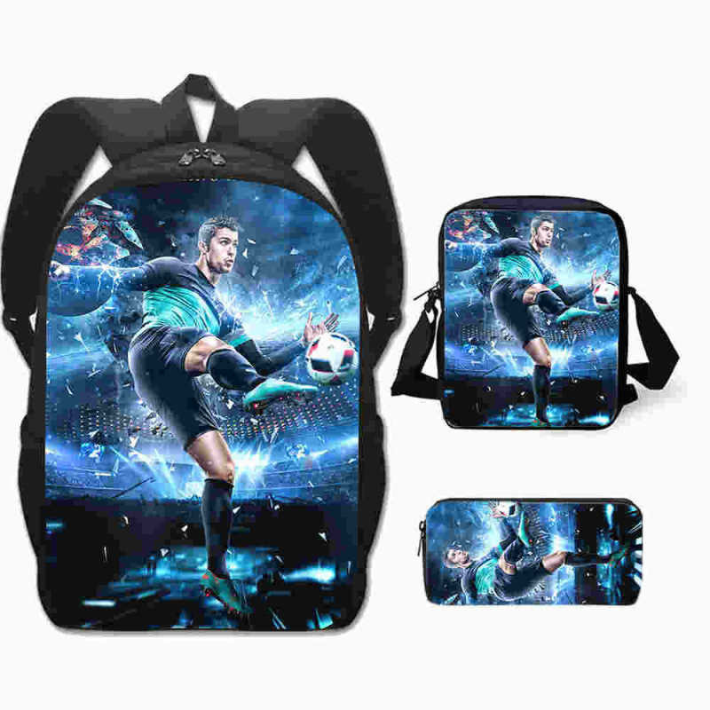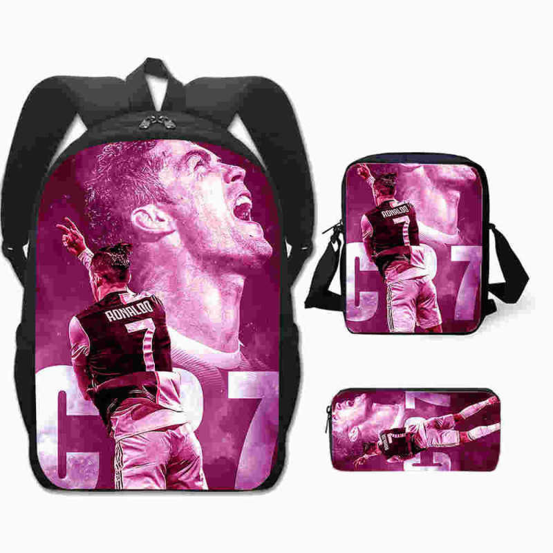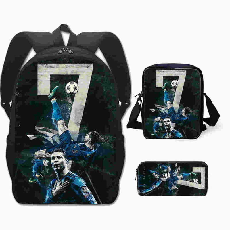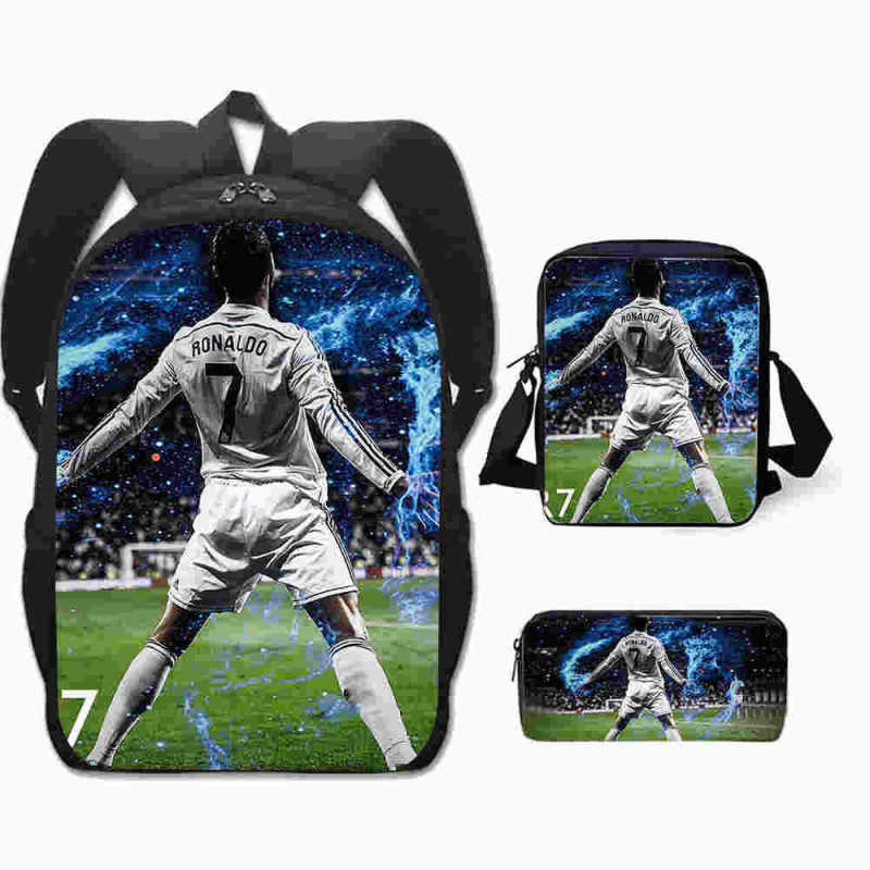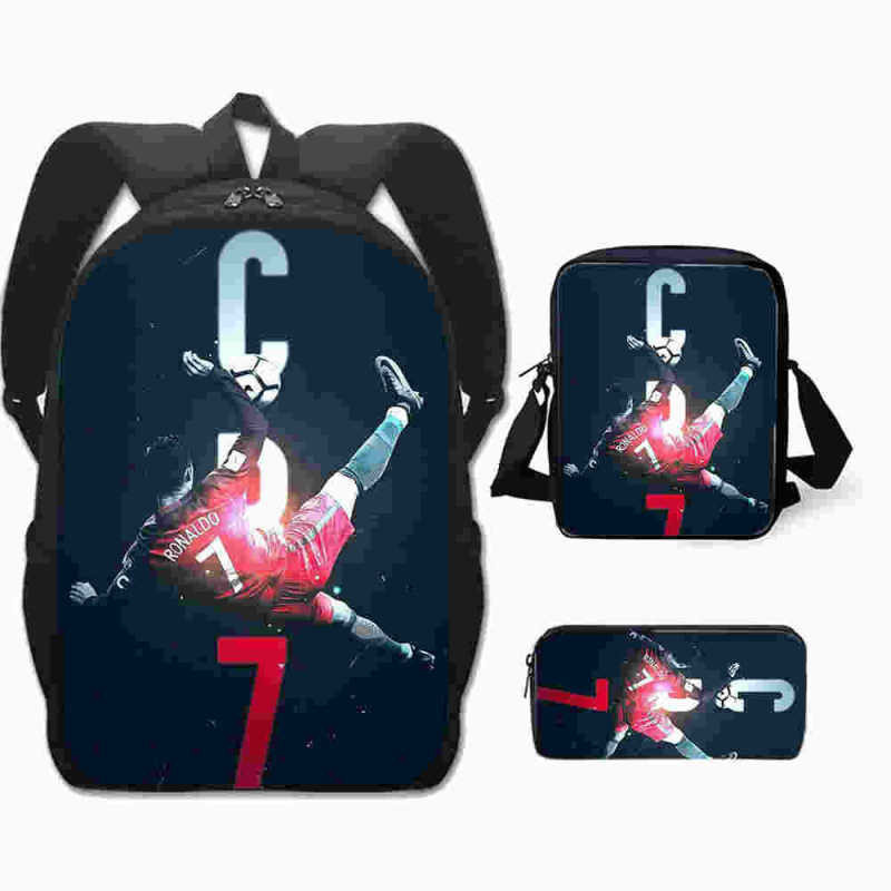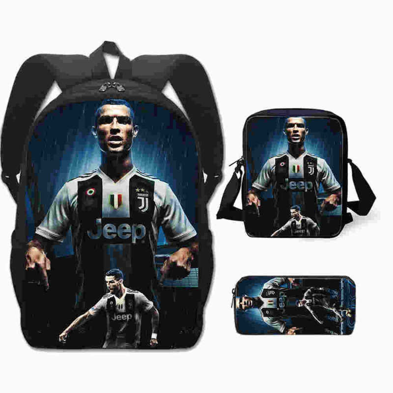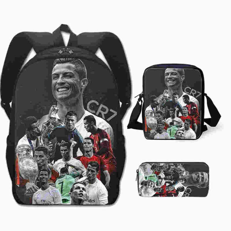 3 Peças/Conjunto Infantil Mochilas Bolsa De Ombro Caixa De Lápis Cristiano Ronaldo Bolsa Escolar Primária Confortável