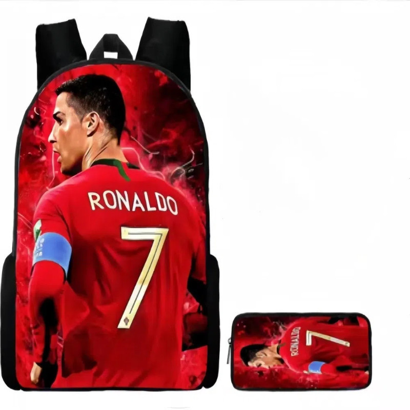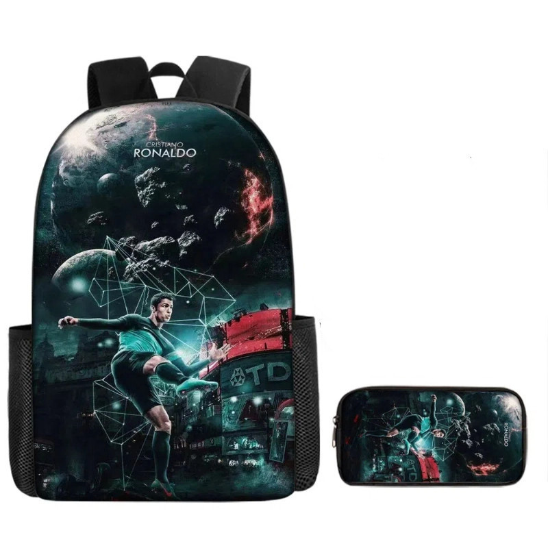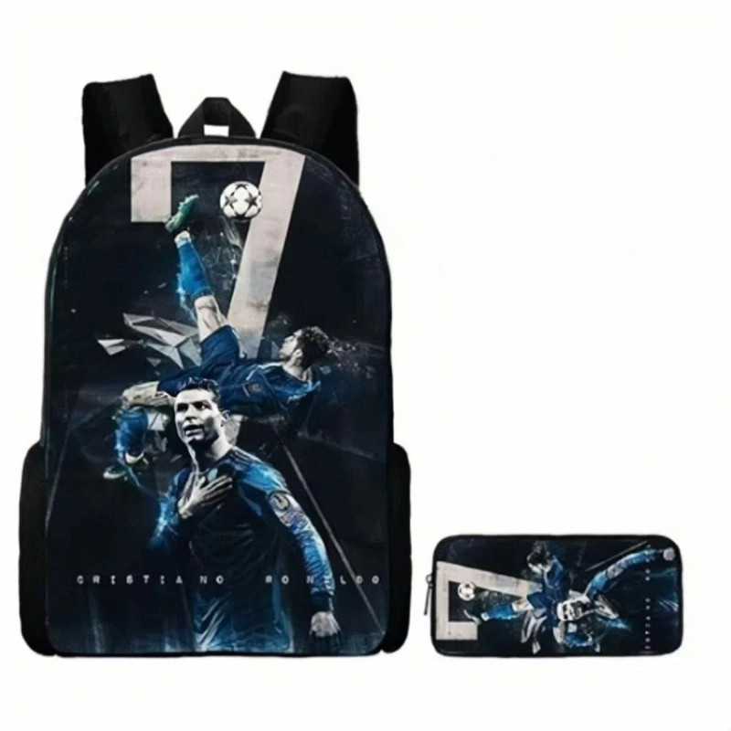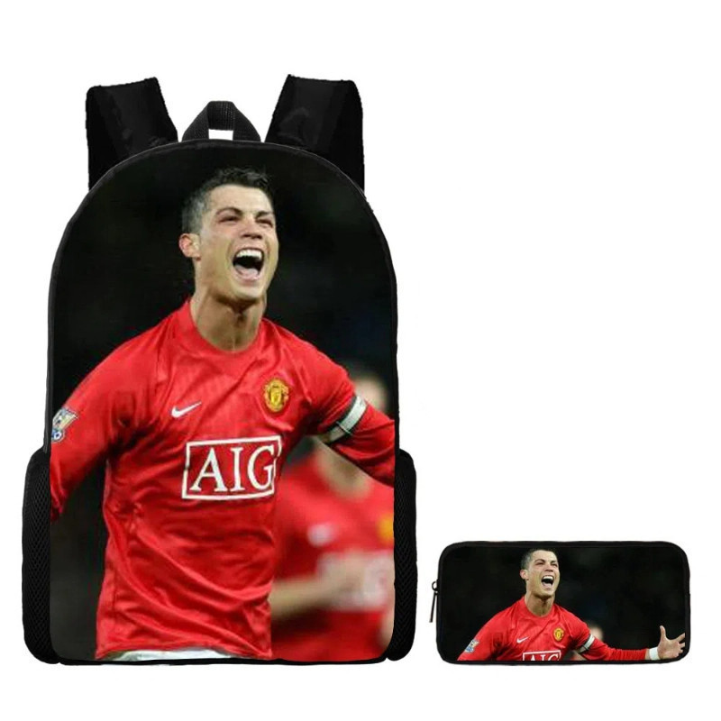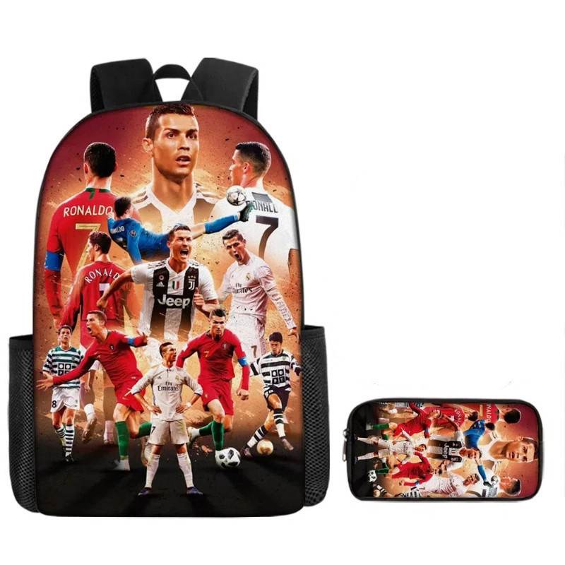 2 Peças/Conjunto Mochila Infantil + Caixa De Lápis Cristiano Ronaldo Escola Bolsa Escolar Leve Confortável Impermeável