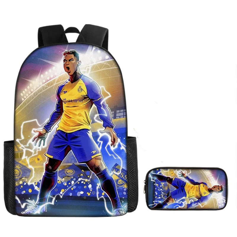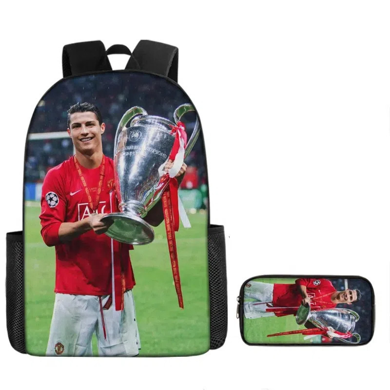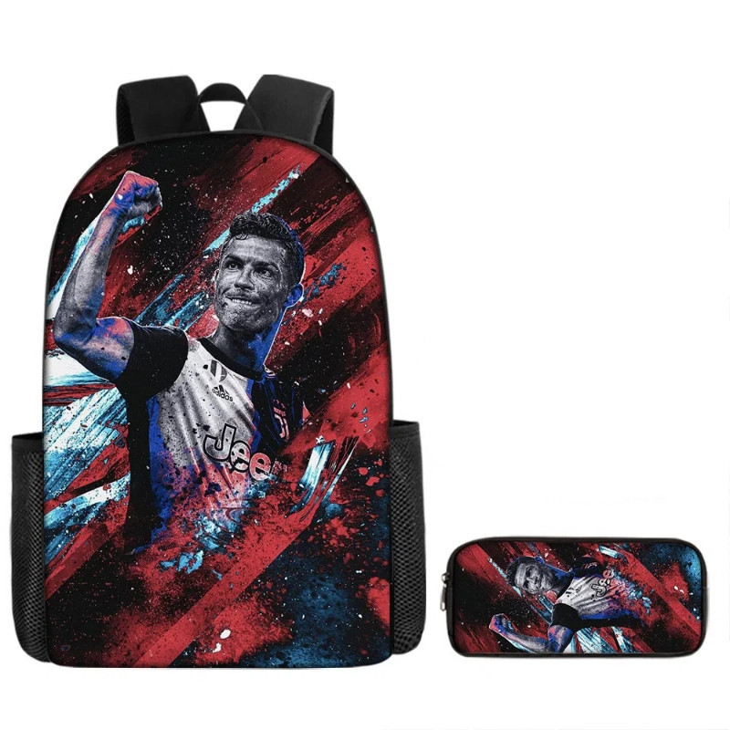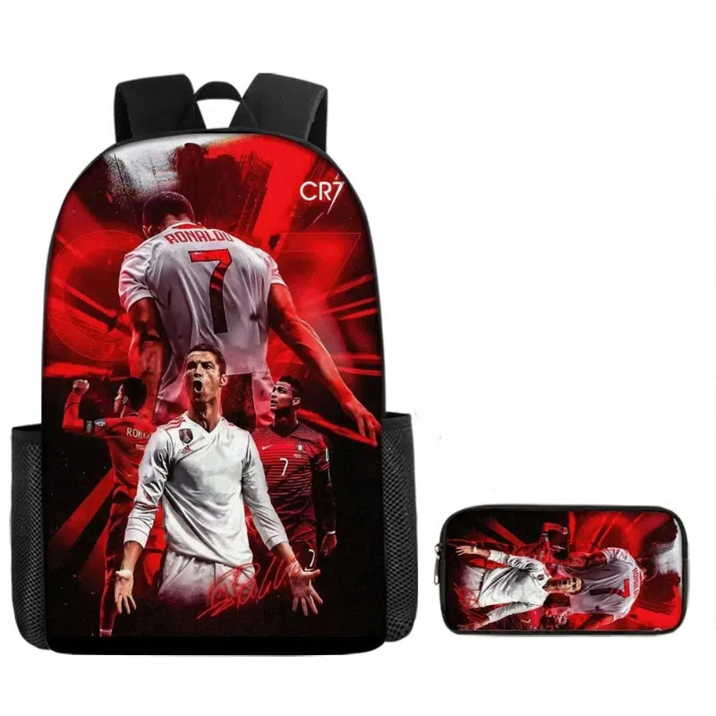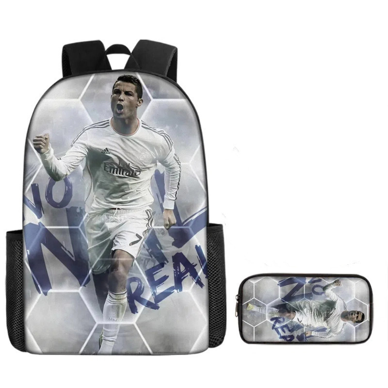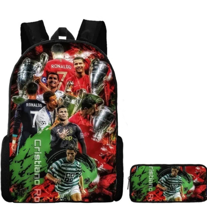 2 Peças/Conjunto Mochila Infantil + Caixa De Lápis Cristiano Ronaldo Escola Bolsa Escolar Leve Confortável Impermeável