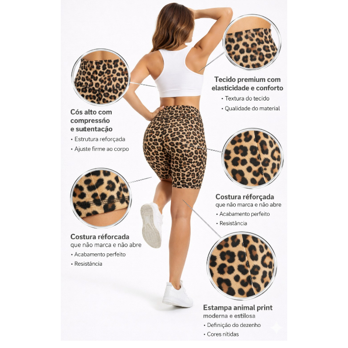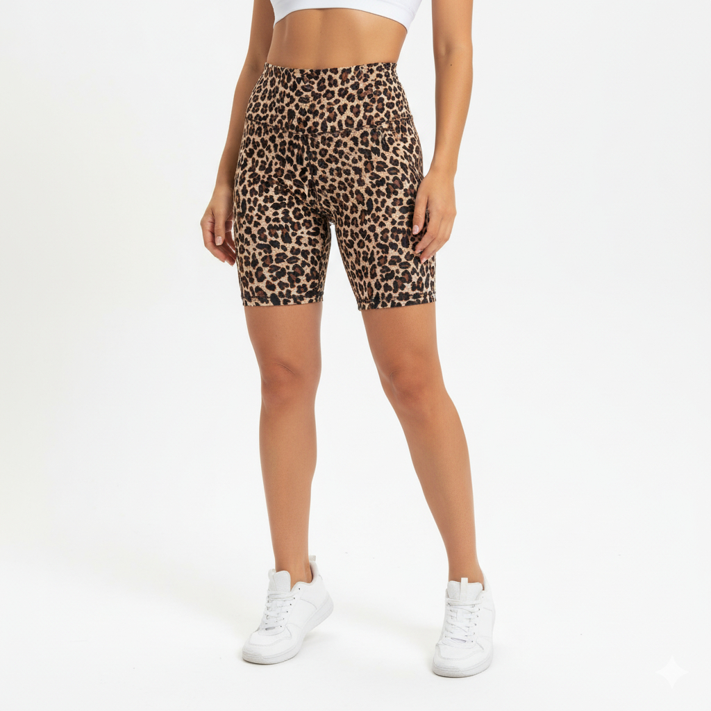 Bermuda Feminina Onça Estampada Fitness Moda Academia Ciclista Cós Alto