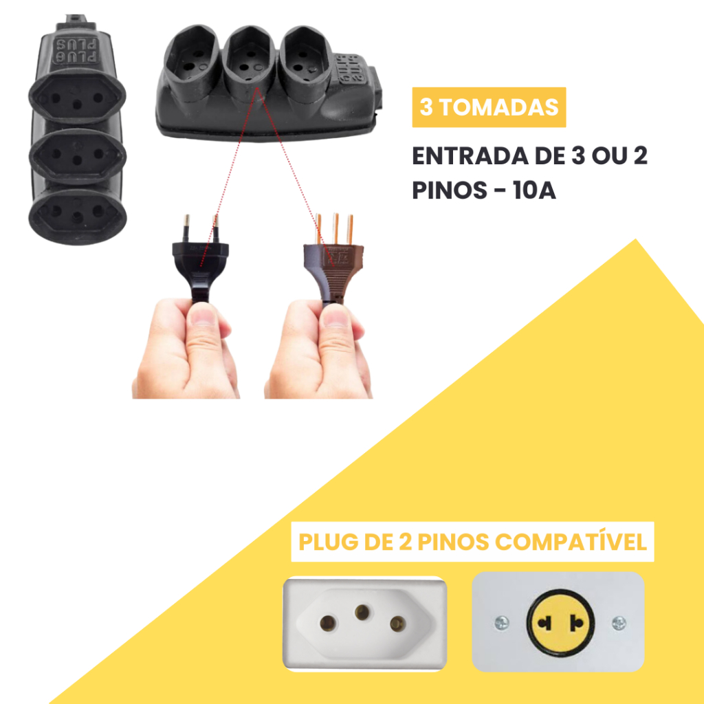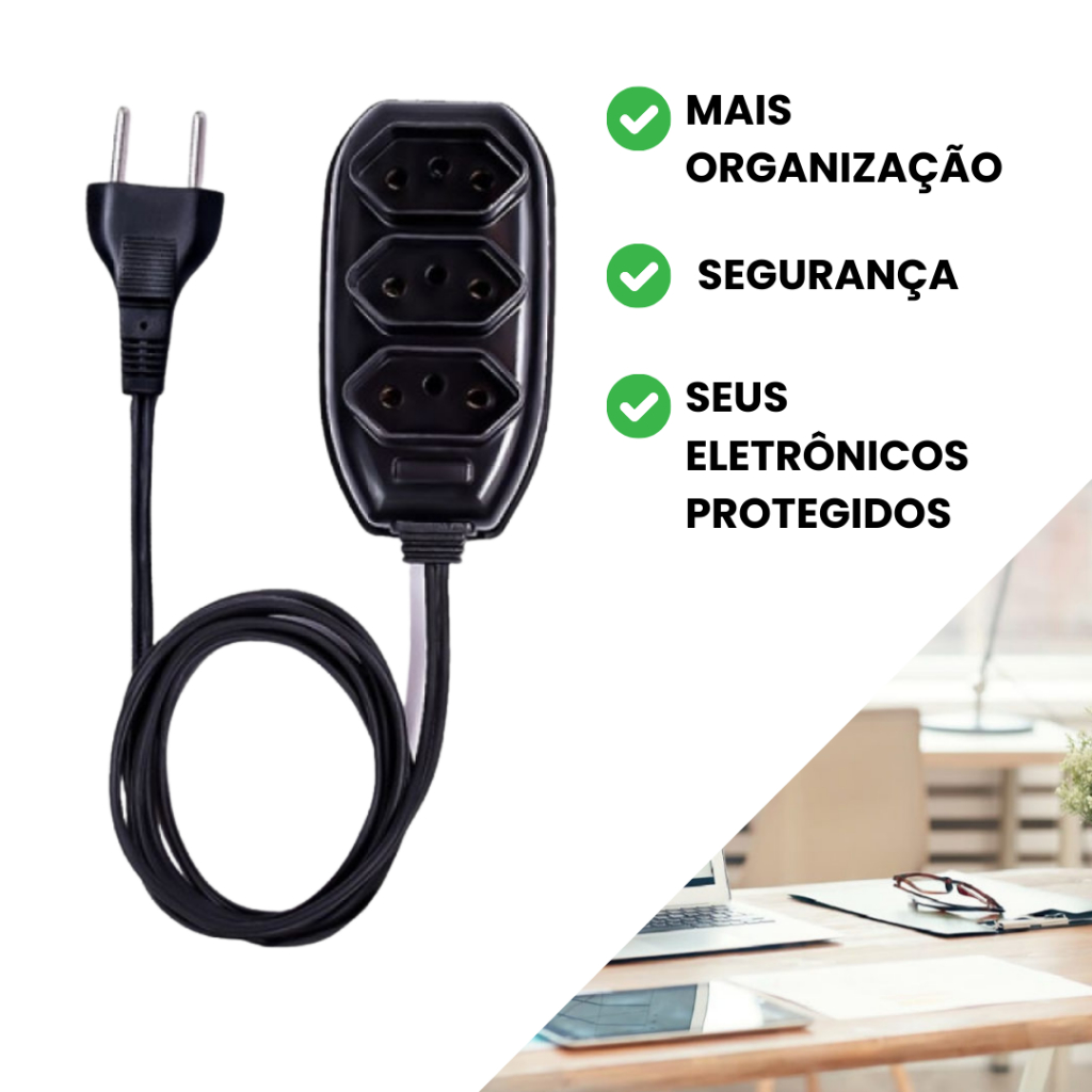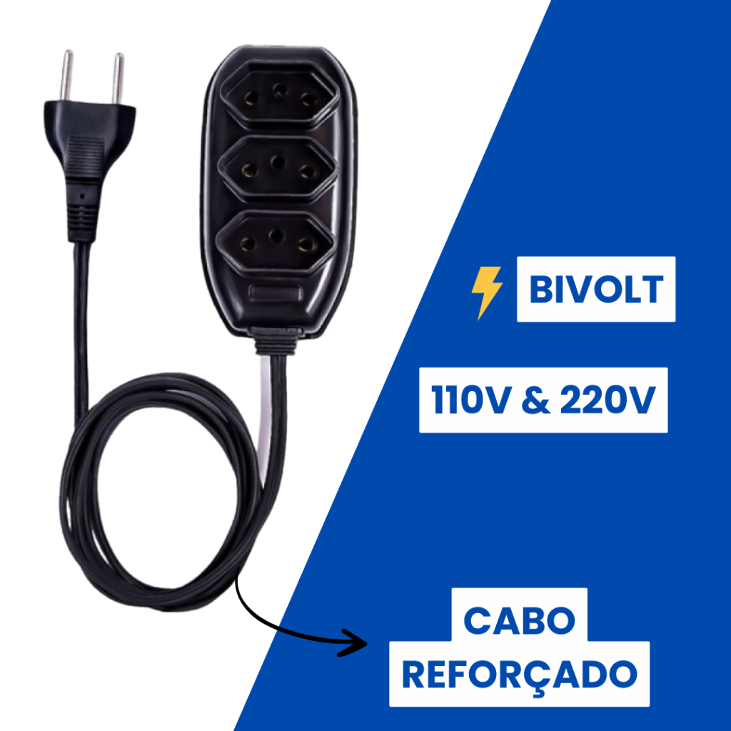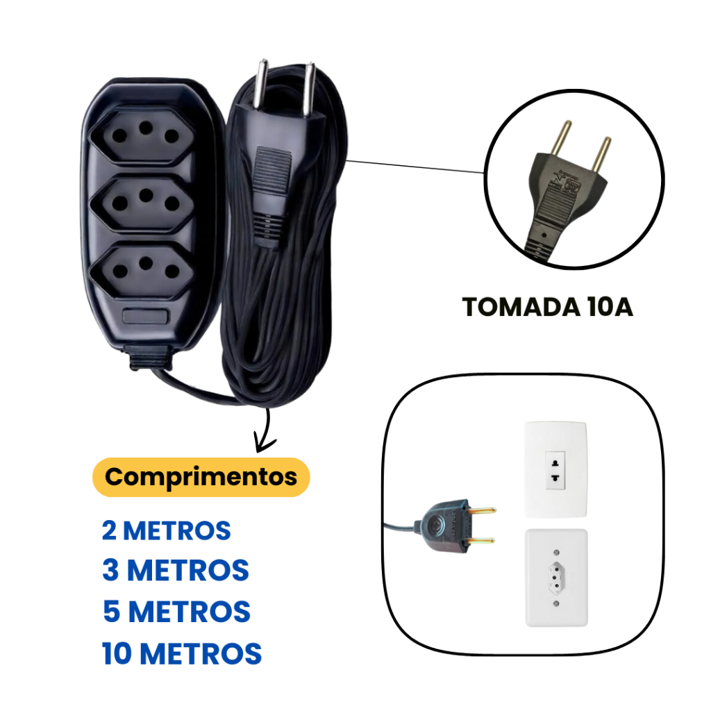 Extensão Eletrica Bivolt Tomadas Tripolares Preta 2 3 5 10 Metros