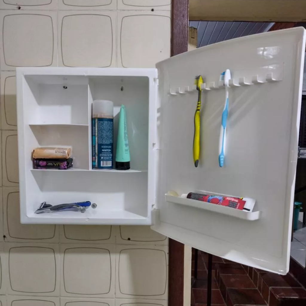 Armário de Banheiro com espelho Embutir ou Sobrepor Armarinho espelho para banheiro c/ buchas e parafusos