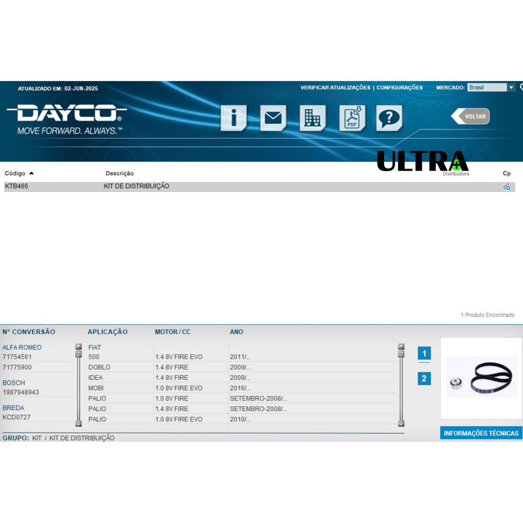 Kit Correia Dentada para Fiat Fire 1.4 8V Evo Uno / Mobi / Strada / Fiorino / Grand Siena / Siena / Idea / Doblo - 2008.