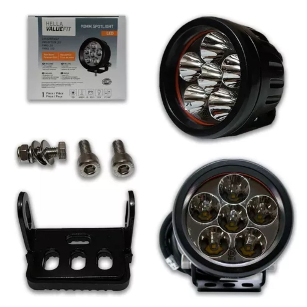 Farol Auxiliar LED ValueFit Hella 6 LED's 12V 24V 18W 1000LM Longo Alcance Moto
