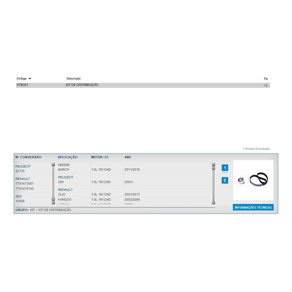 Kit Correia Dentada Distribuição Motor D4D 1.0 16V - Renault Clio / Logan / Kangoo / Sandero / Twingo - Nissan March - P