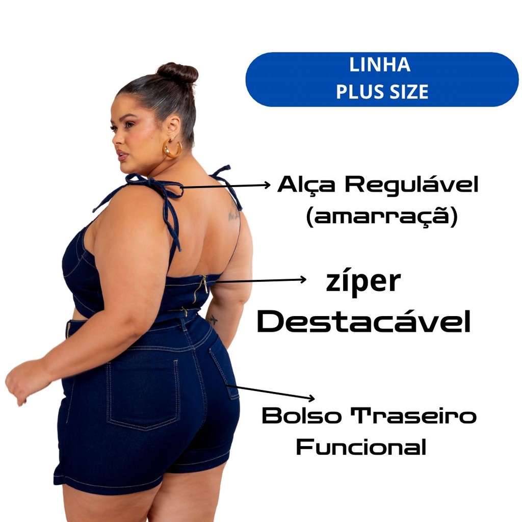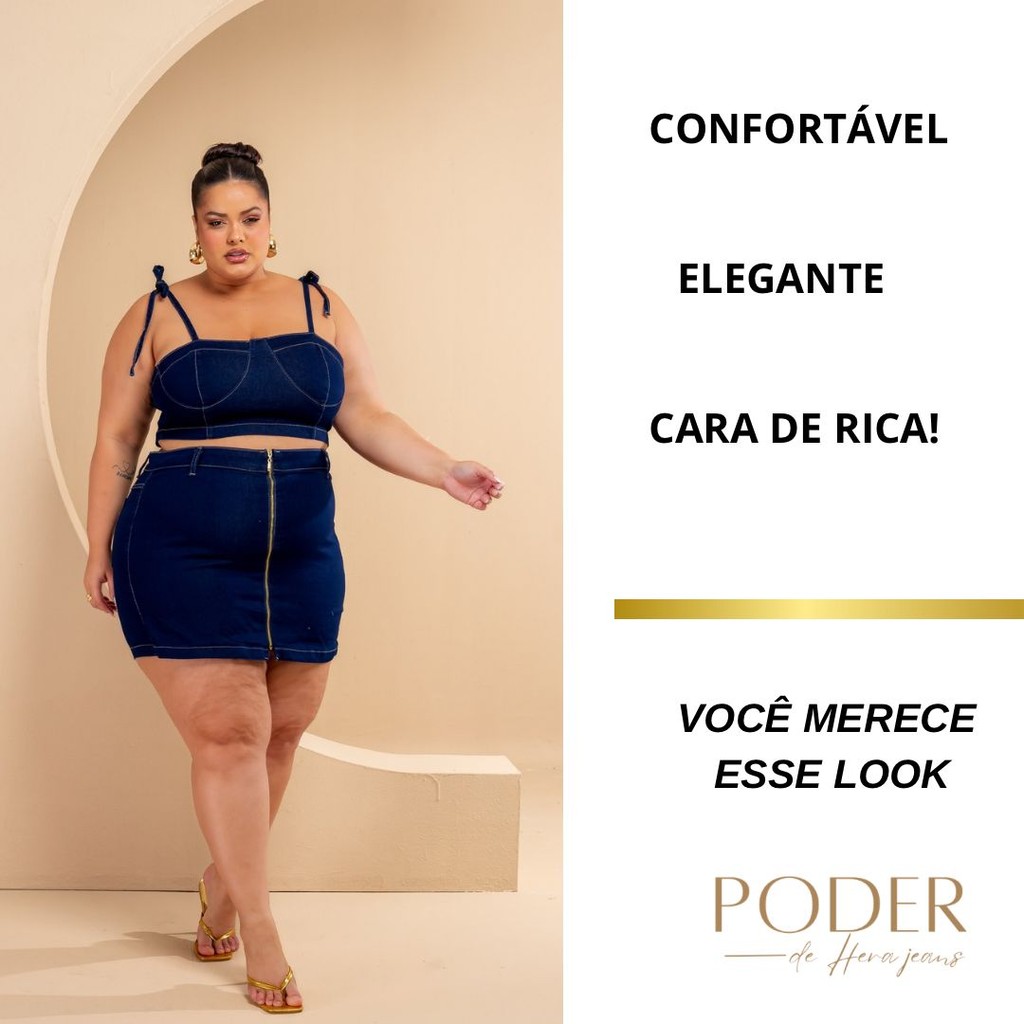 Conjunto Jeans com Lycra Premium Cropped e Short Saia Plus Size