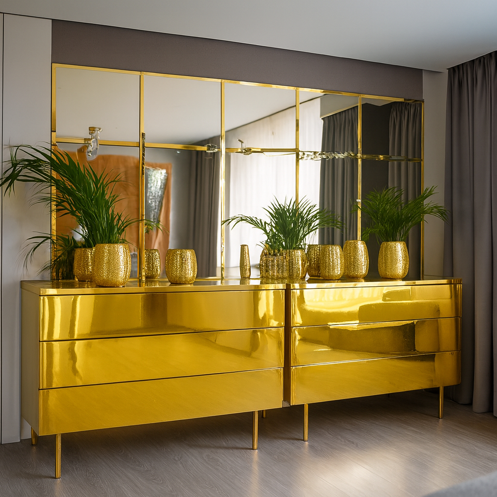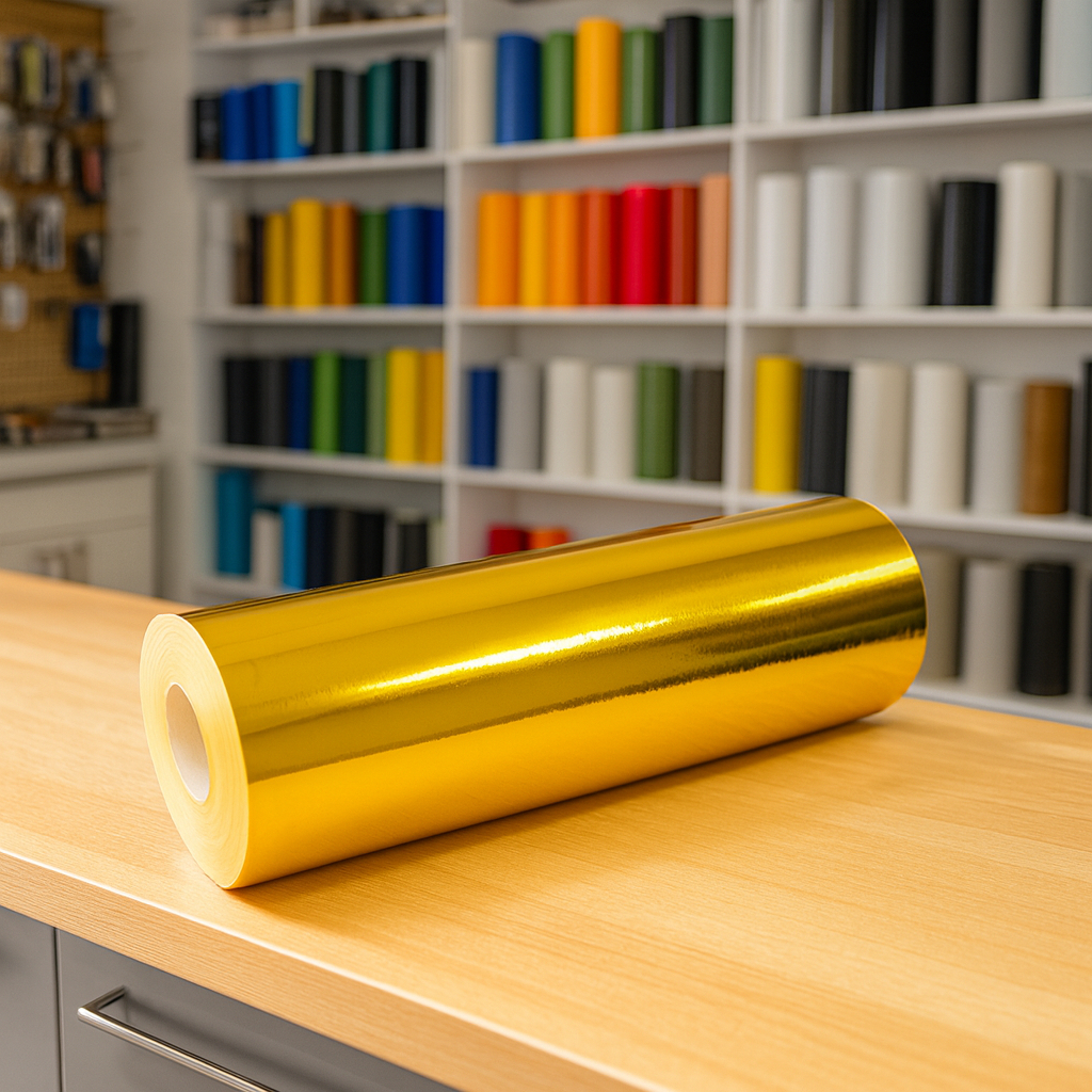 Adesivo Vinil Dourado Ouro Espelhado Lavável Para Envelopar Móveis, Geladeira, Fogão Mesa e Móveis
