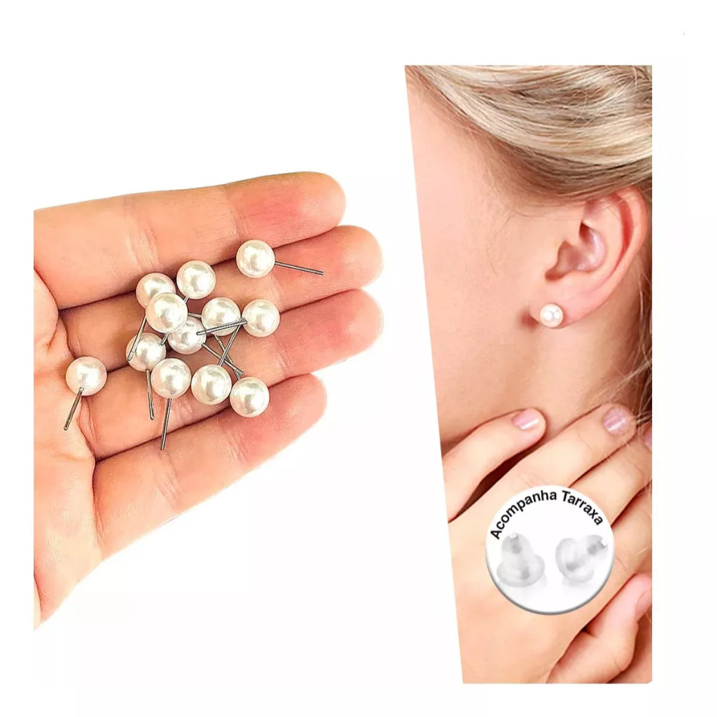 100 Pares Brincos de Perola 6mm com tarracha de silicone Lembrancinhas