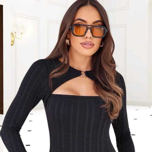 Body Femenino Manga Longa Decotado Elegante e Estiloso-Confortavel ,luxo Excelente elasticidade