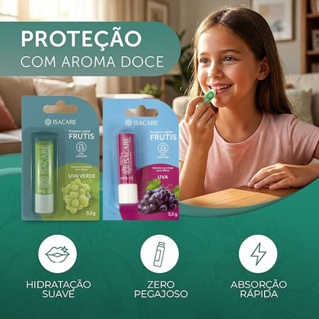 Protetor Labial Isacare FPS15 Uva - Escolha 2, 3, 4, 6 ou 8 Unidades