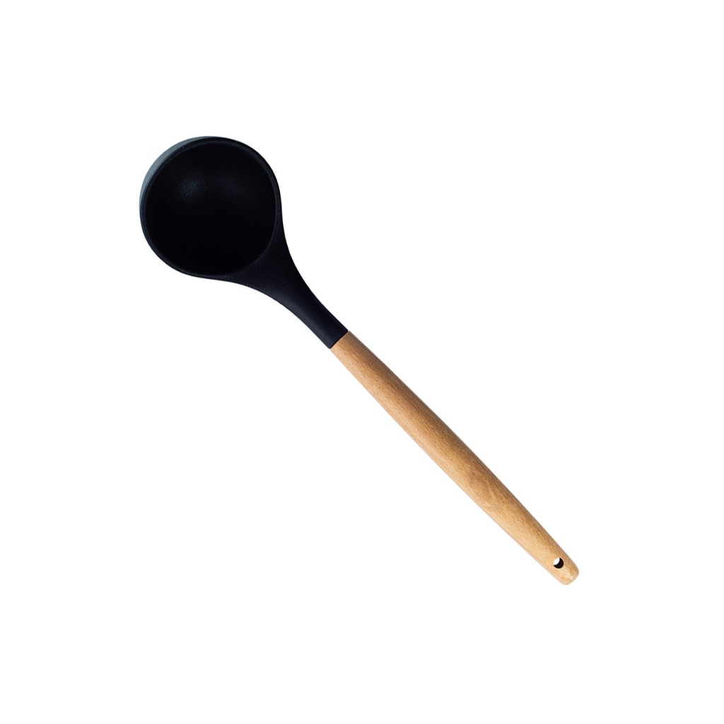 Concha de Silicone Preta com Cabo de Madeira 31 cm