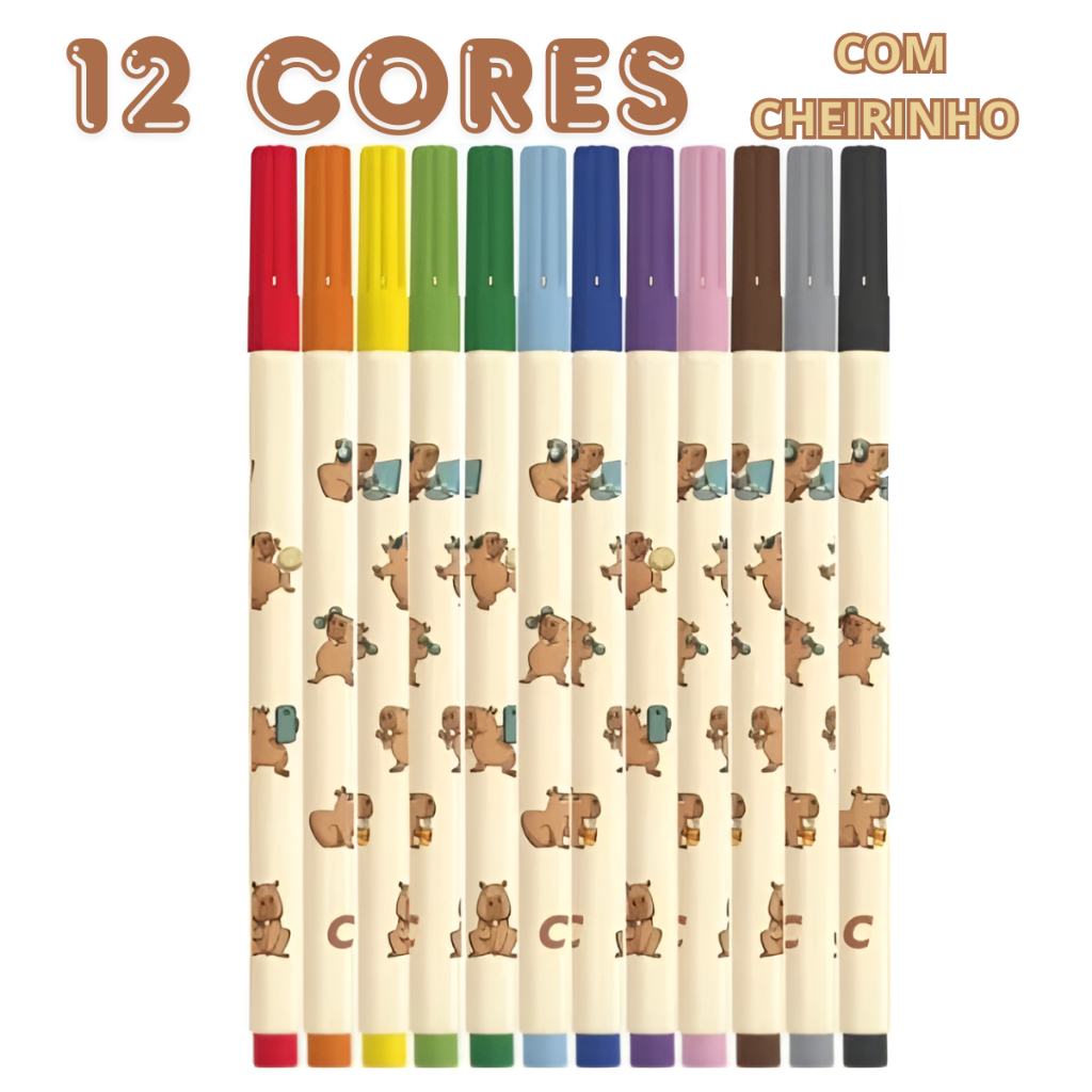 KIT 24 Canetinhas CAPIVARA COM CHEIRINHO 12 Cores Vivas + 12 Tom Pastel Compactor NeoPen