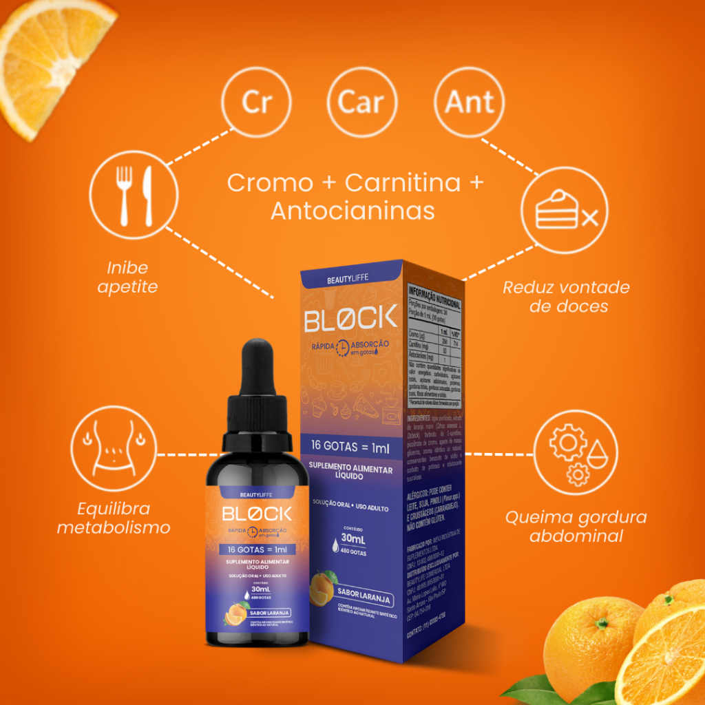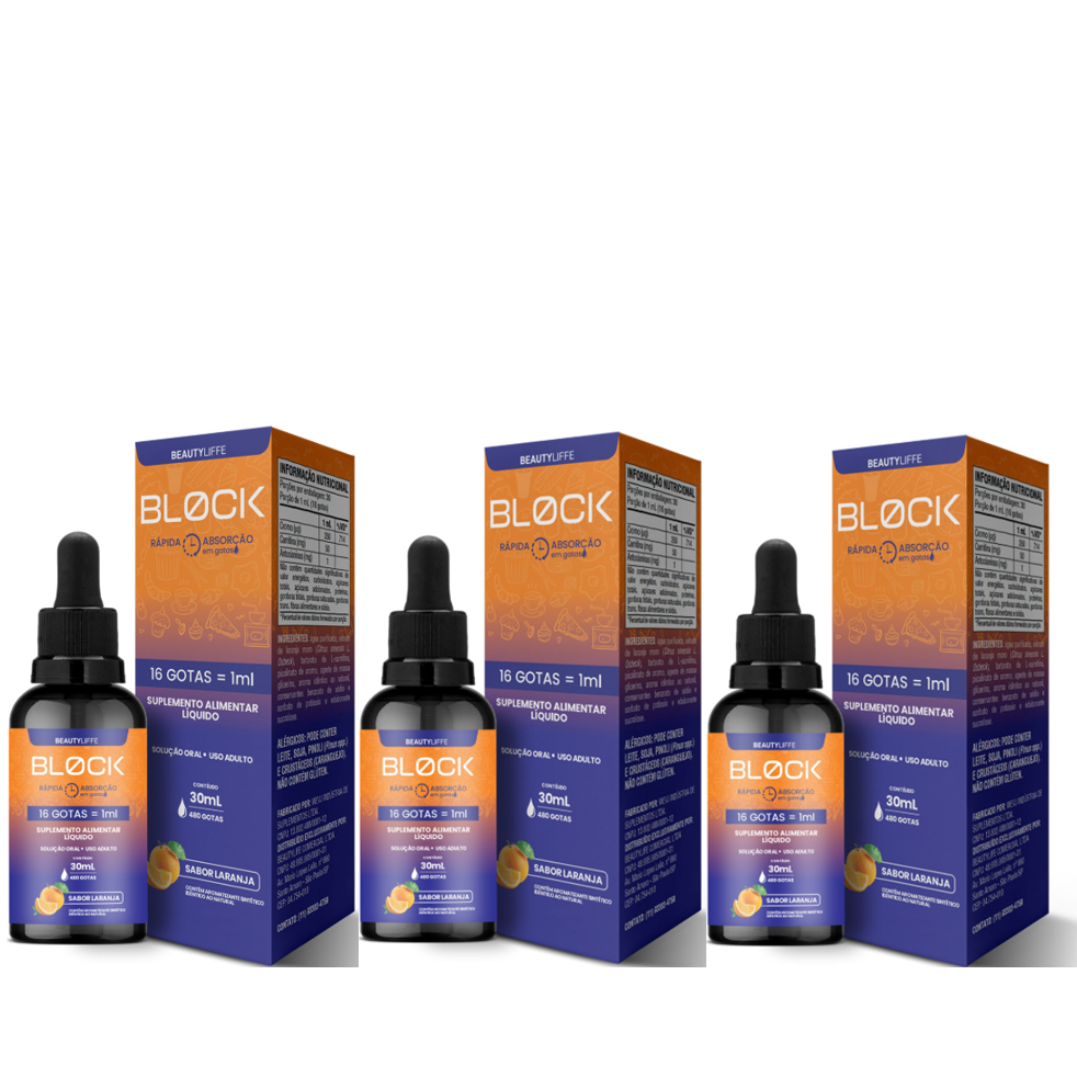 Kit 3x BLOCK Anti Açucar e Salgados 30ml BeautyLiffe - Termogênico - Inibidor de Apetite com Laranja Moro