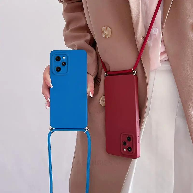 Xiaomi Redmi 12 4G 12C Capa De Cordão Cruzado Para Nota 12s 12 Pro 5G Mate Proteção Da Câmera A Cores Sólidas Silicone Telefone Macio