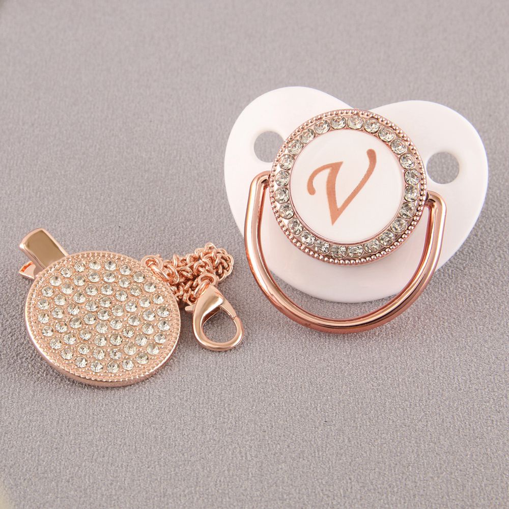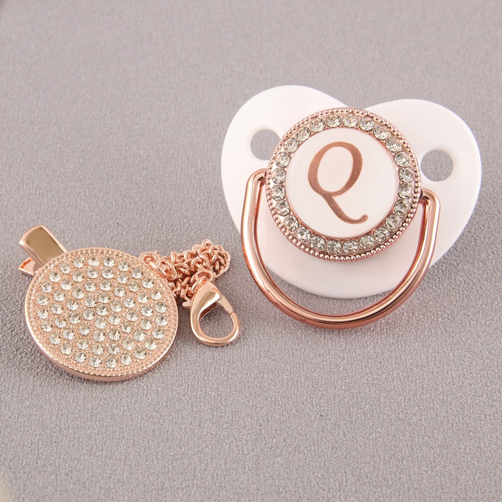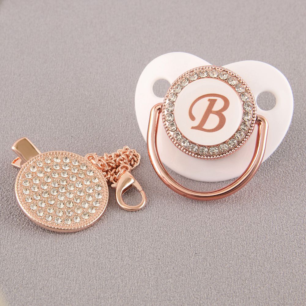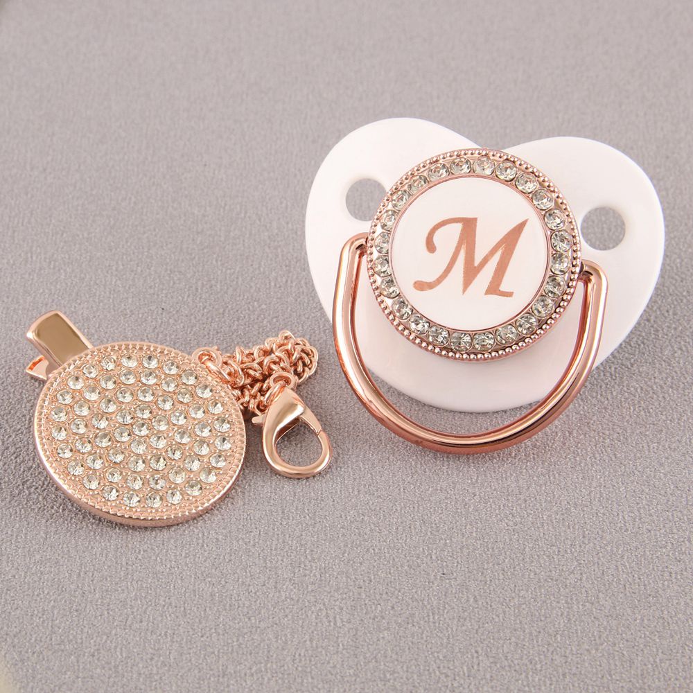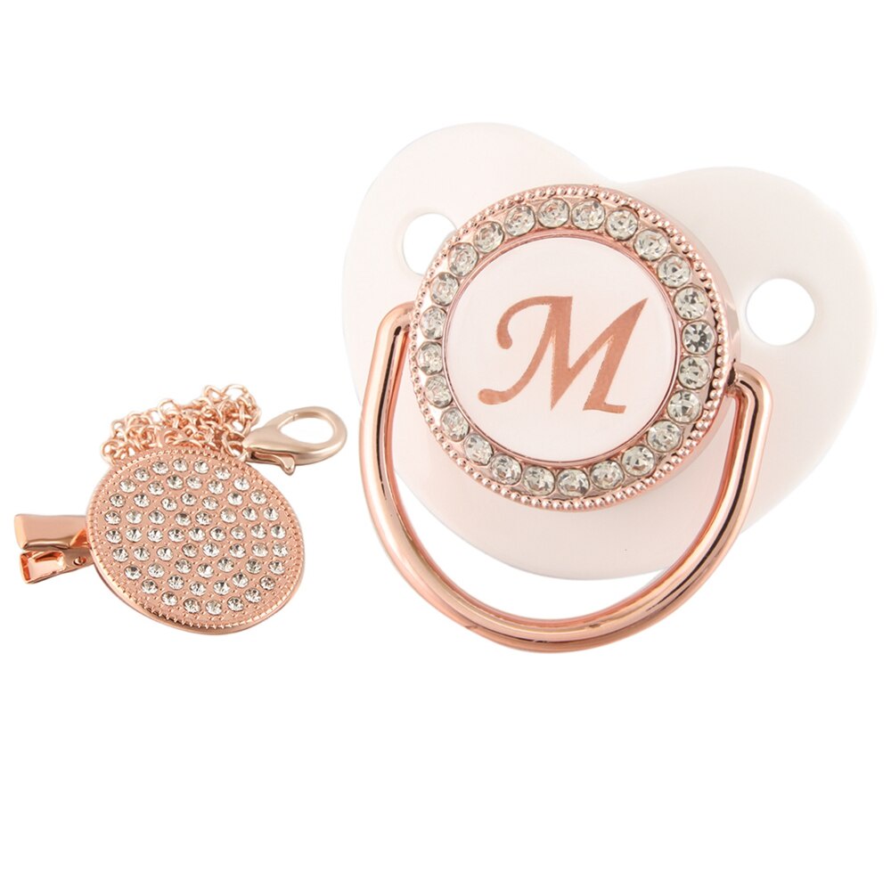Chupeta De Bebê Rosa Branca Com 26 Letras Iniciais E Clipe De Corrente De Diamante
