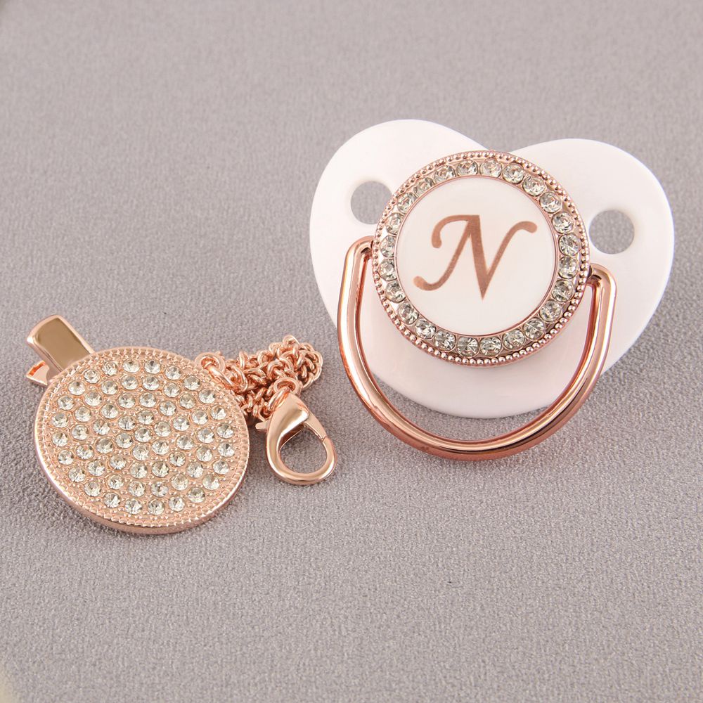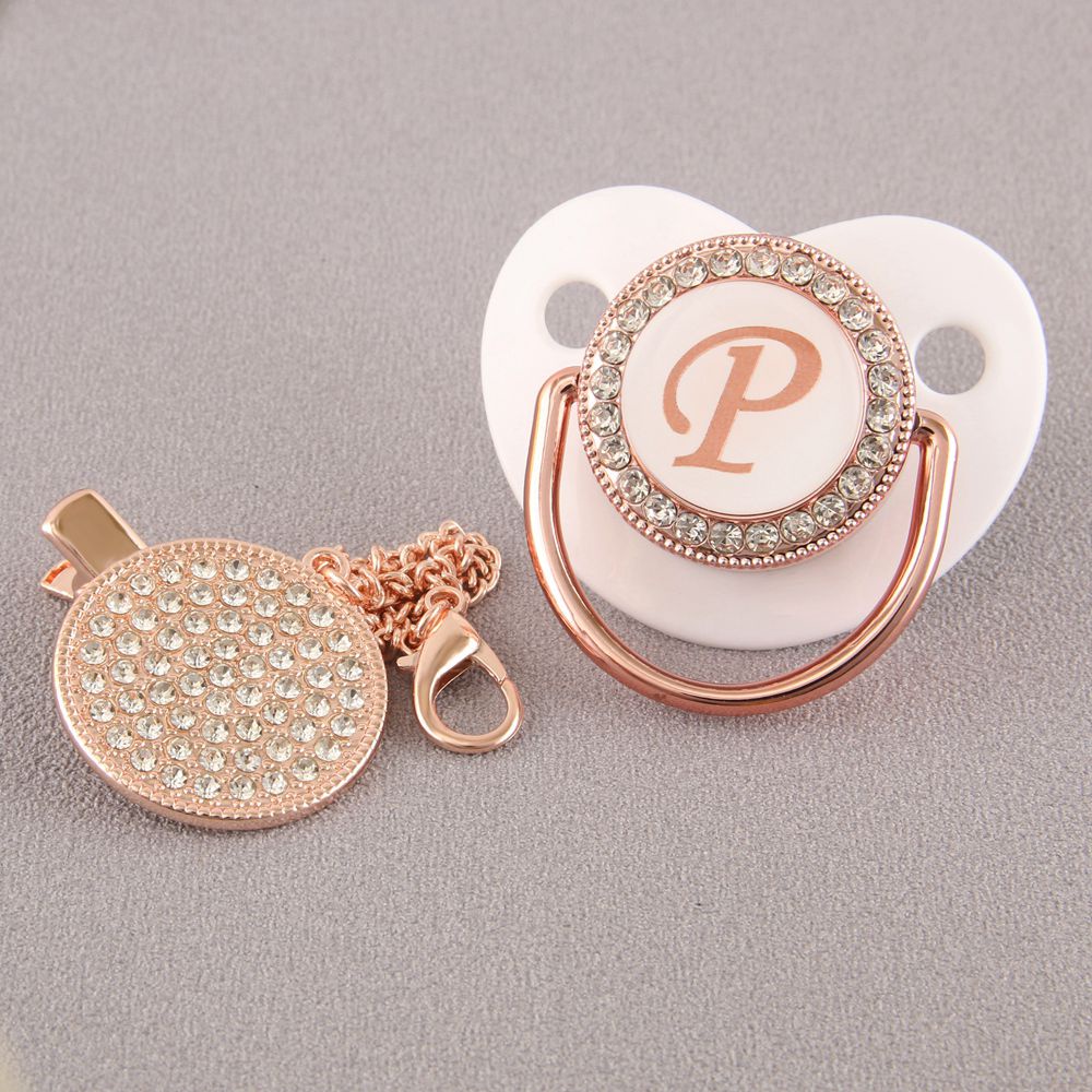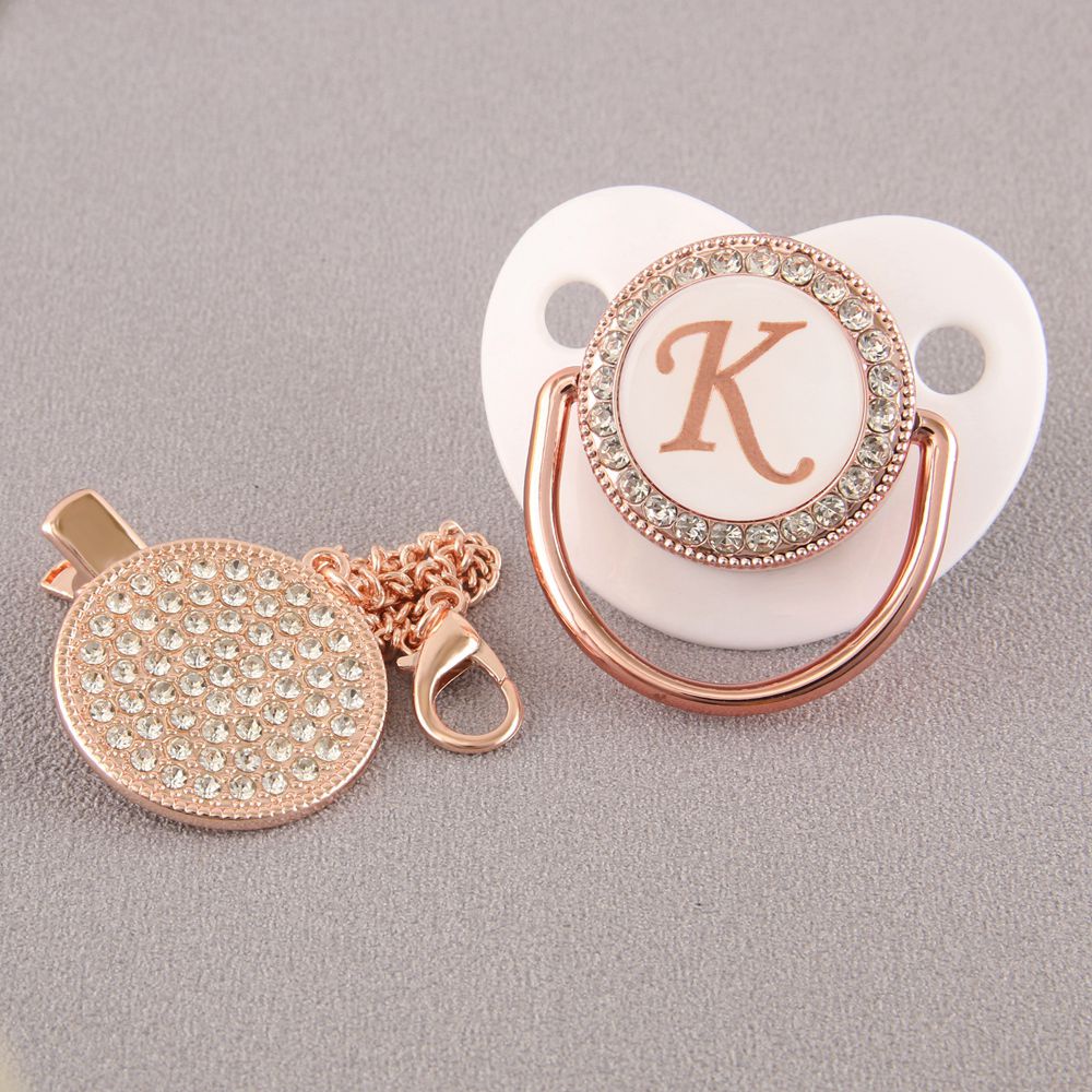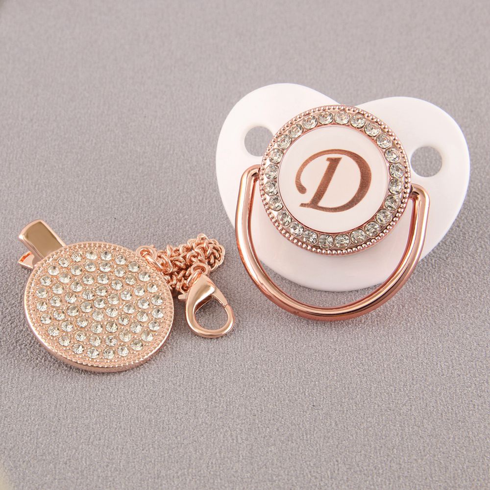 Chupeta De Bebê Rosa Branca Com 26 Letras Iniciais E Clipe De Corrente De Diamante