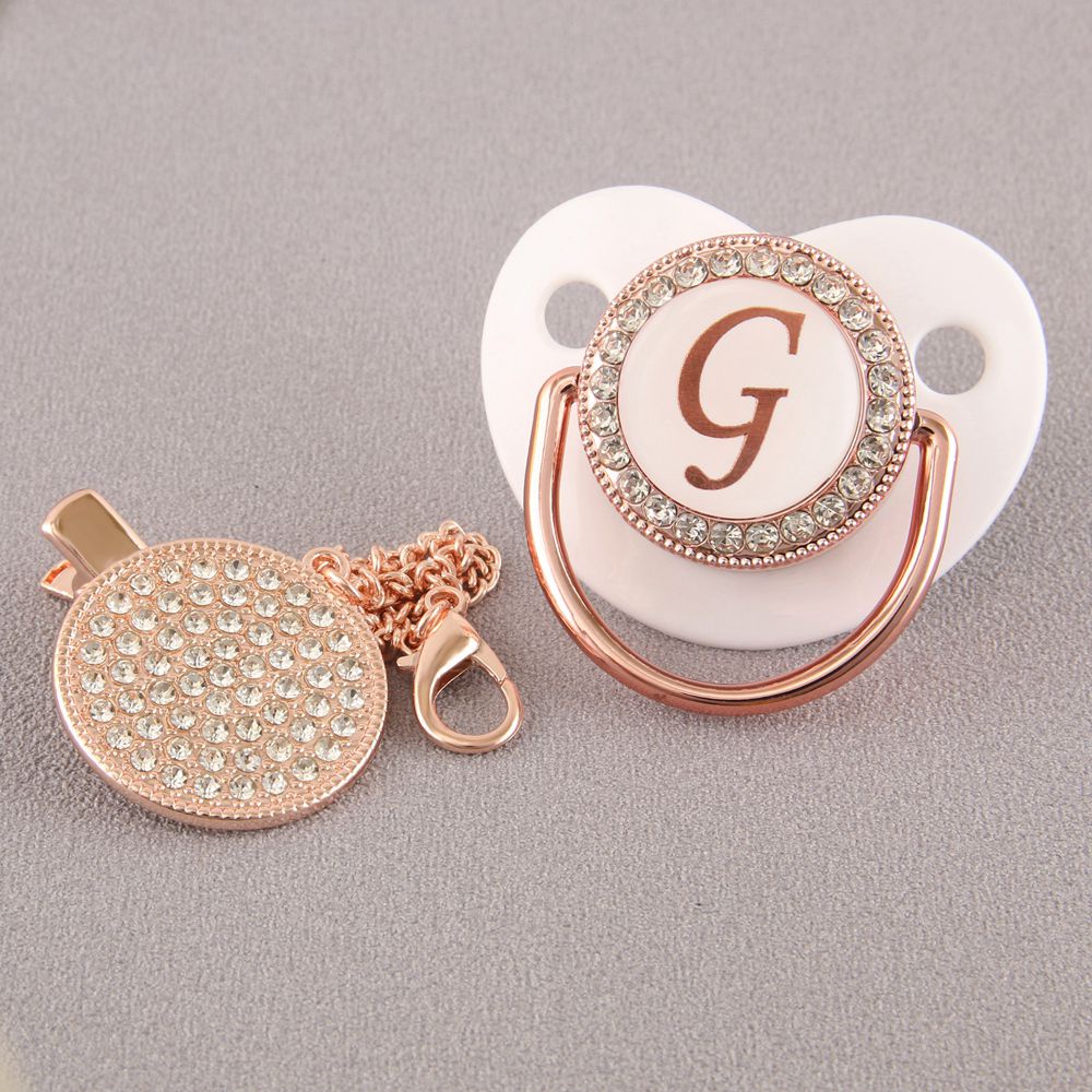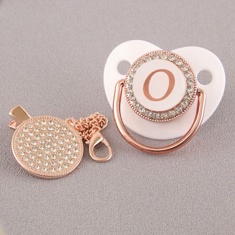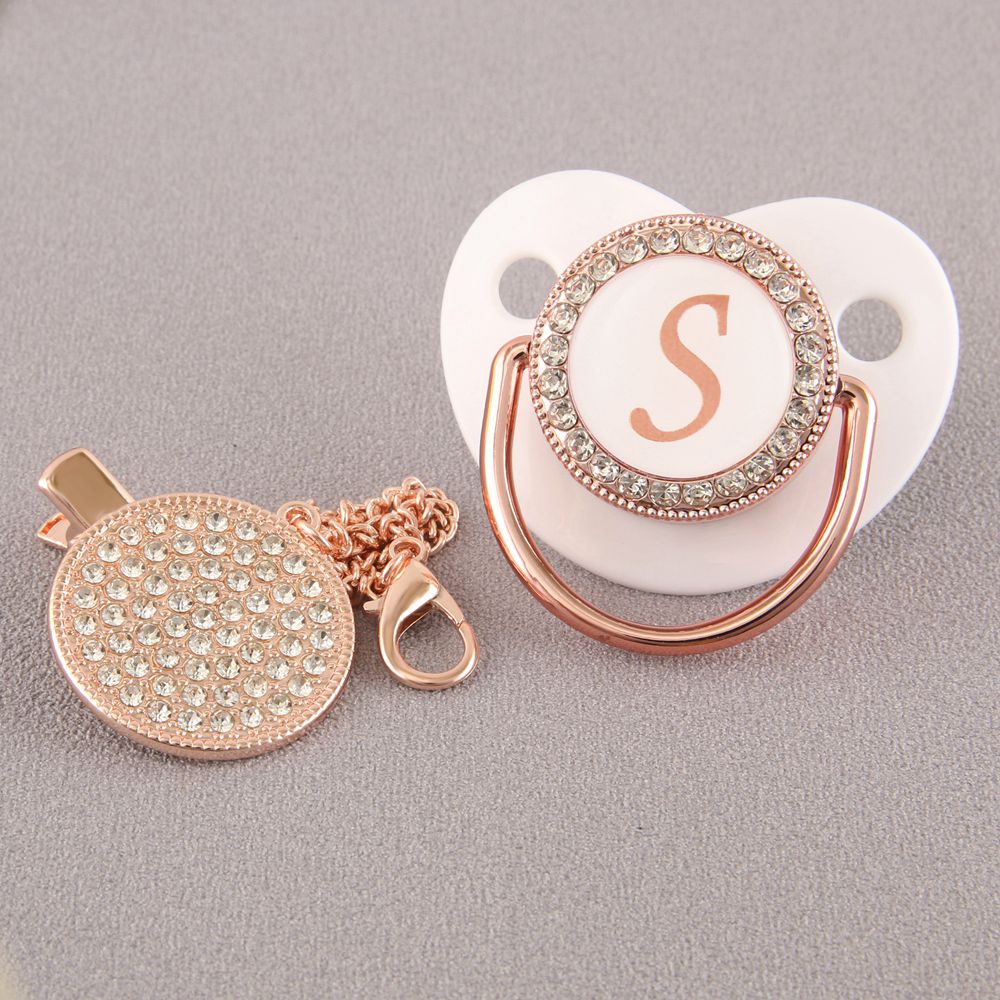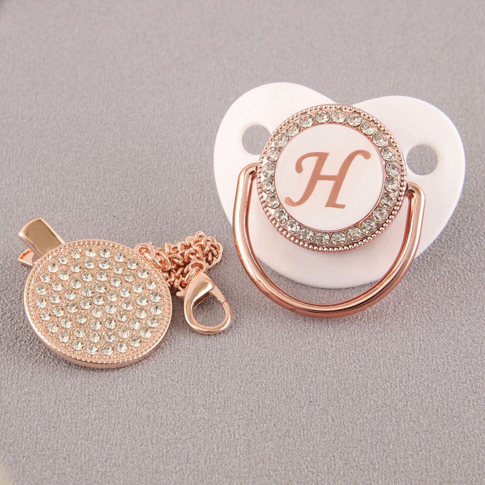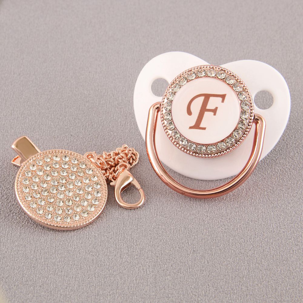Chupeta De Bebê Rosa Branca Com 26 Letras Iniciais E Clipe De Corrente De Diamante