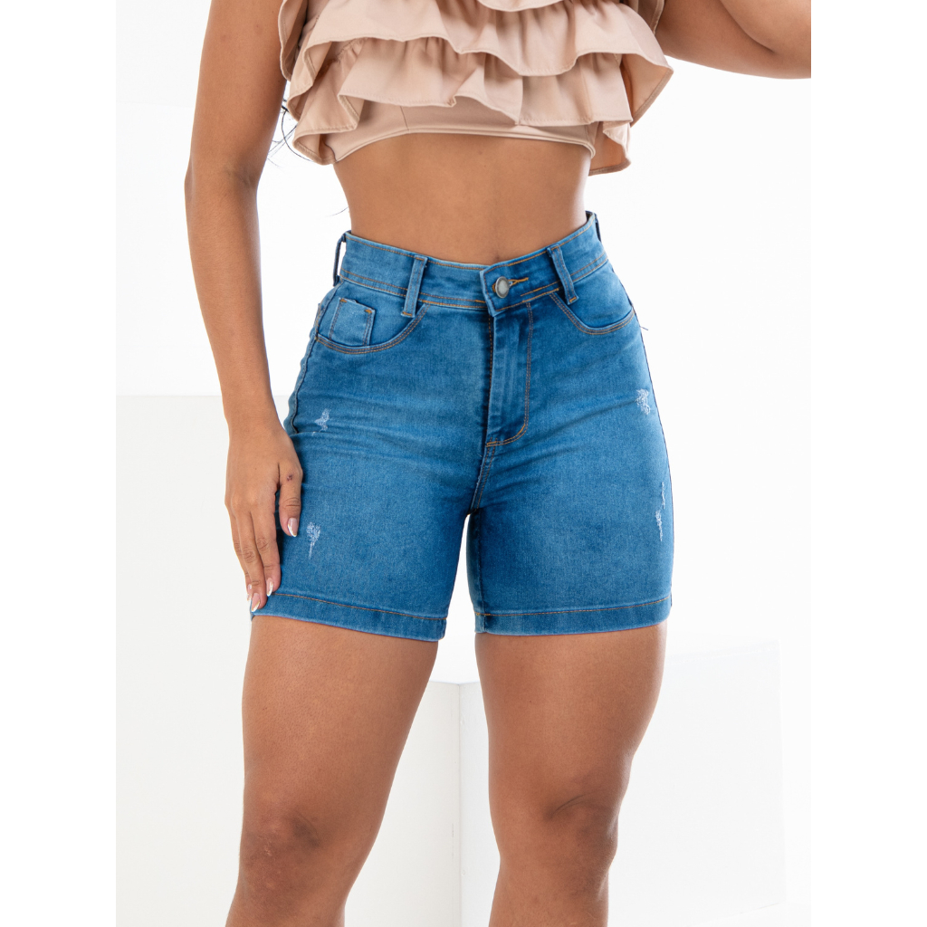 Bermuda Meia Coxa Feminina Cintura Alta com Lycra Empina Bumbum Ciclista jeans Cos Alto
