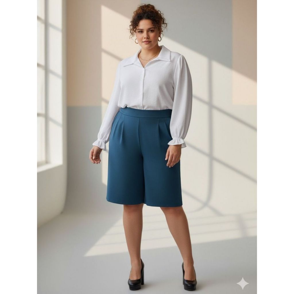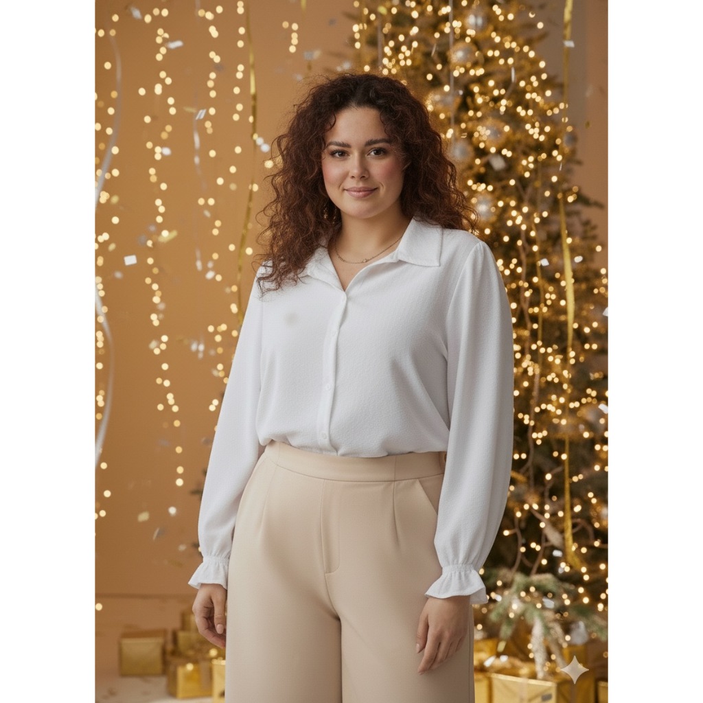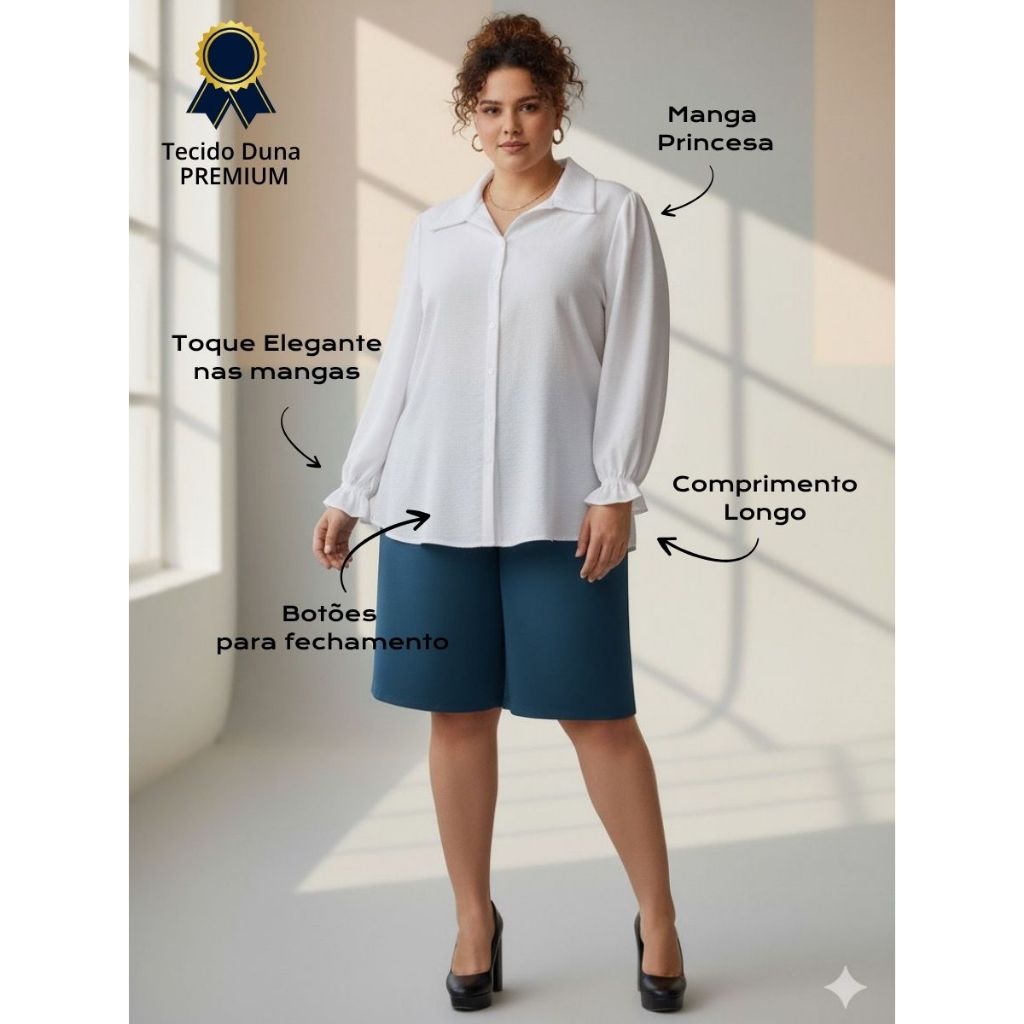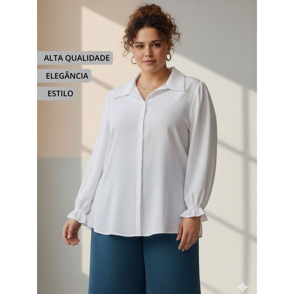 Camisa Duna Social Branca Manga Longa Feminina Plus Size GG G1 G2 G3 - Branco Ano Novo