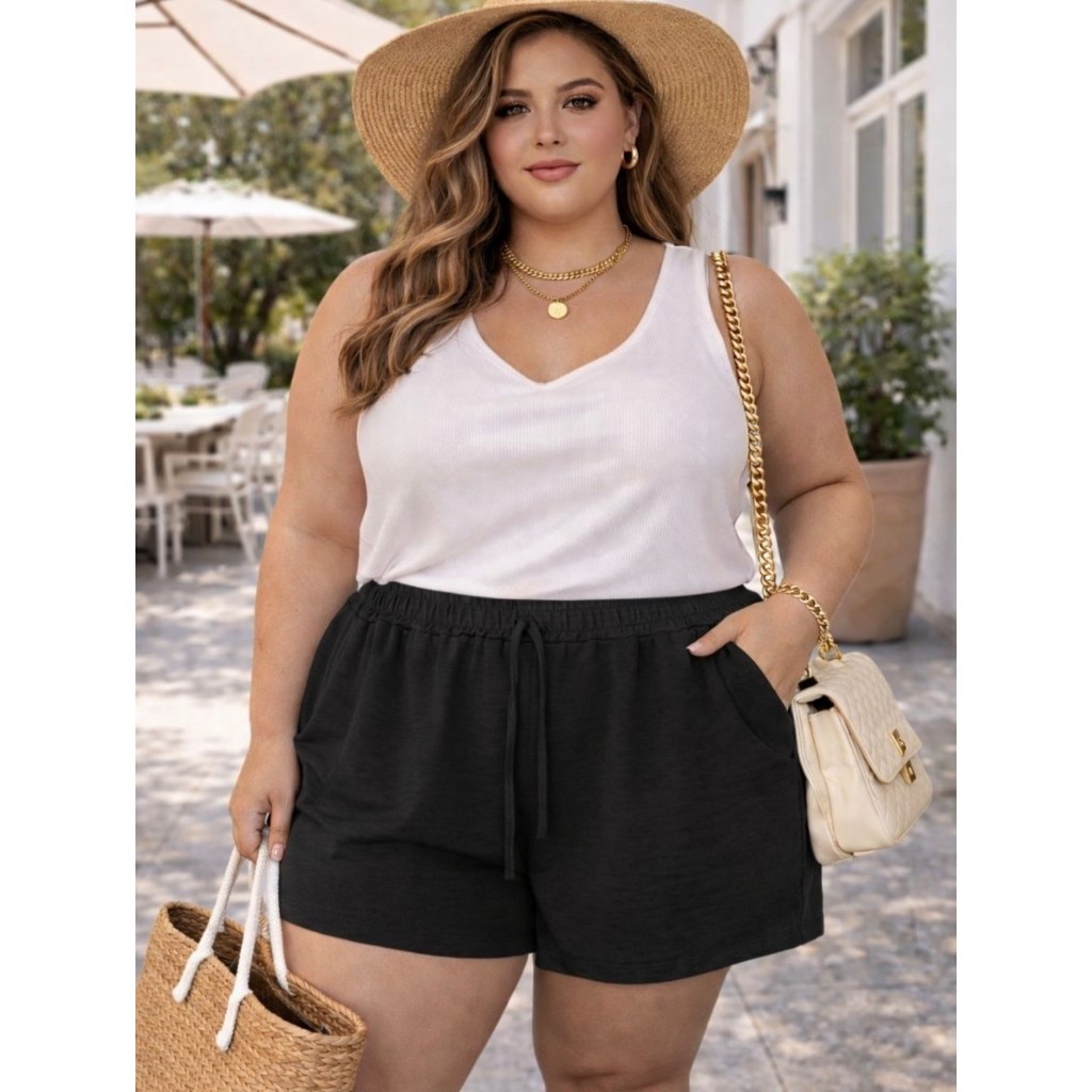 Shorts Duna Feminino Plus Size Verão Preto GG G1 G2 G3
